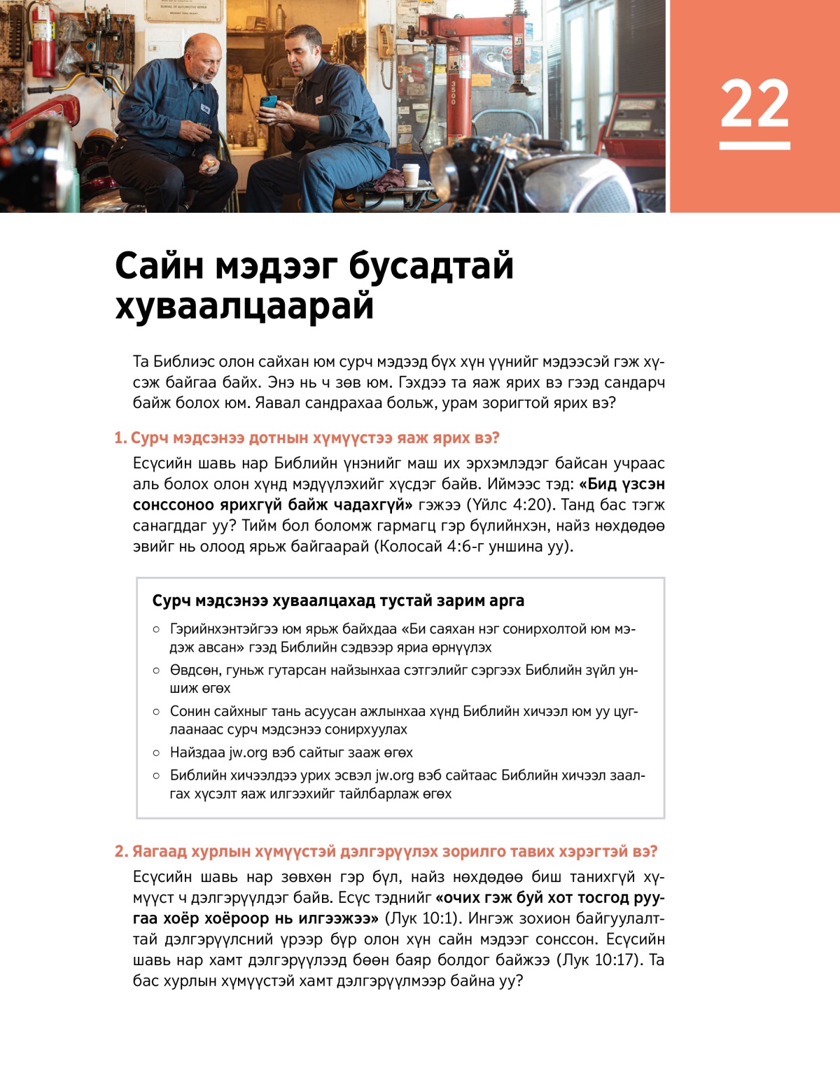 Энэ боломжийг ашиглан та Библийн хичээлээс сурч мэдсэнээ яаж ярих вэ?
