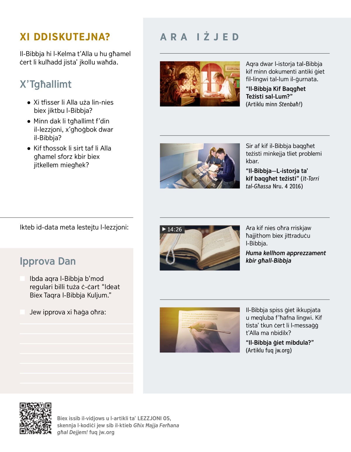 Minn dak li tgħallimt f’din il-lezzjoni, x’għoġbok dwar il-Bibbja?