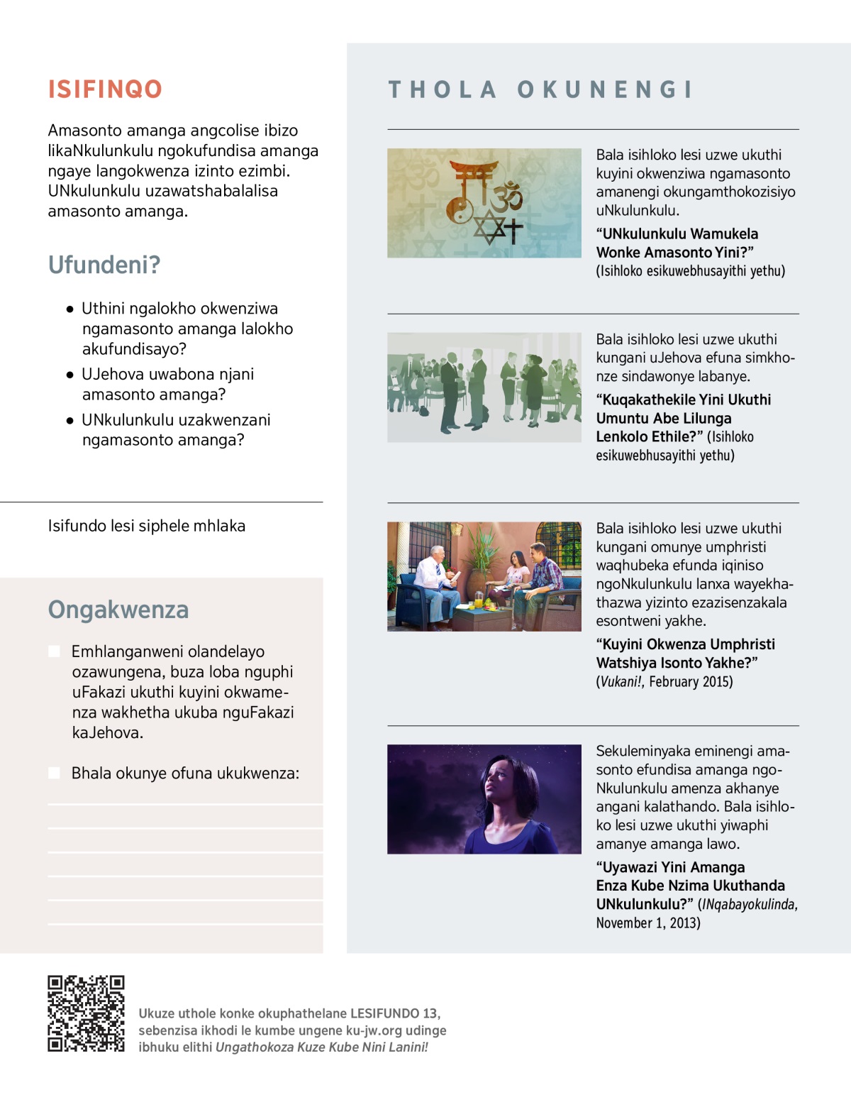 “Uyawazi Yini Amanga Enza Kube Nzima Ukuthanda UNkulunkulu?” (INqabayokulinda, November 1, 2013)