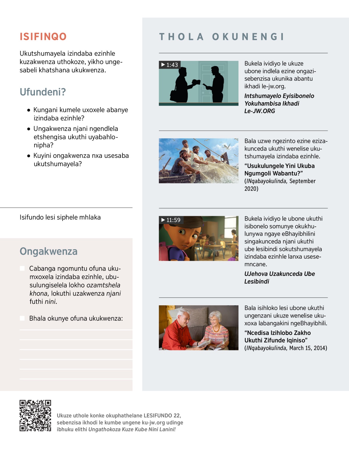 Xoxela osebenza labo ukuthi ufundeni emhlanganweni wethu kumbe ekufundeni kwakho iBhayibhili.