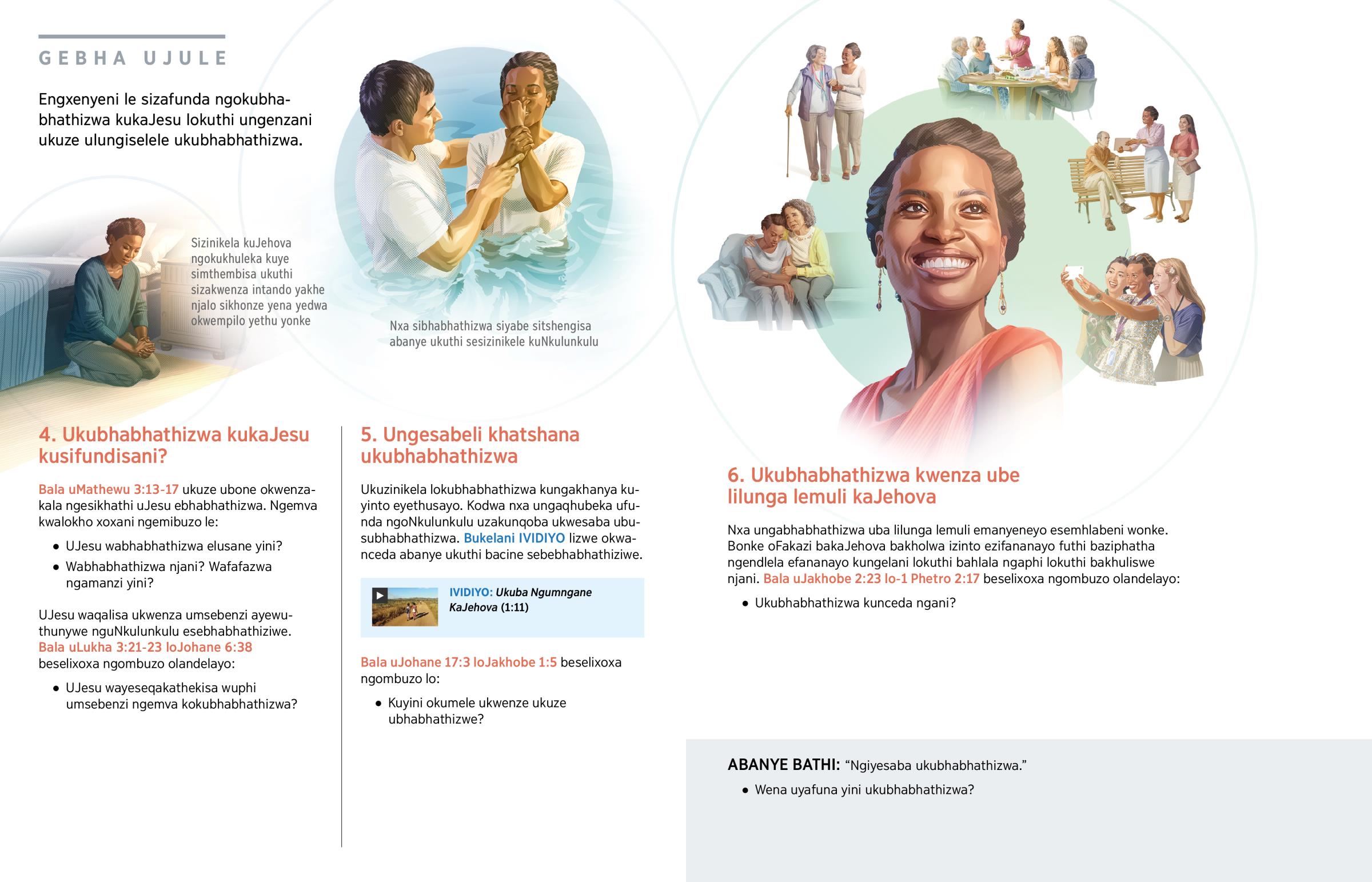 UJesu wathi wonke umuntu ofuna ukuba ngumKhristu kumele abhabhathizwe. (Bala uMathewu 28:19, 20.) Kutshoni ukubhabhathizwa? Kumele wenzeni nxa ufuna ukubhabhathizwa?