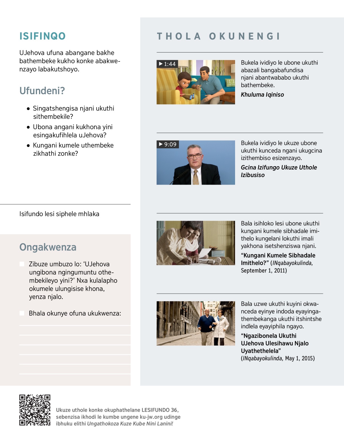 Engxenyeni le uzabona ukuthi uJehova uyabathanda abantu abathembekileyo lokuthi ukuthembeka kuzakunceda njani. Uzabona lokuthi ungatshengisa njani ukuthi uthembekile.