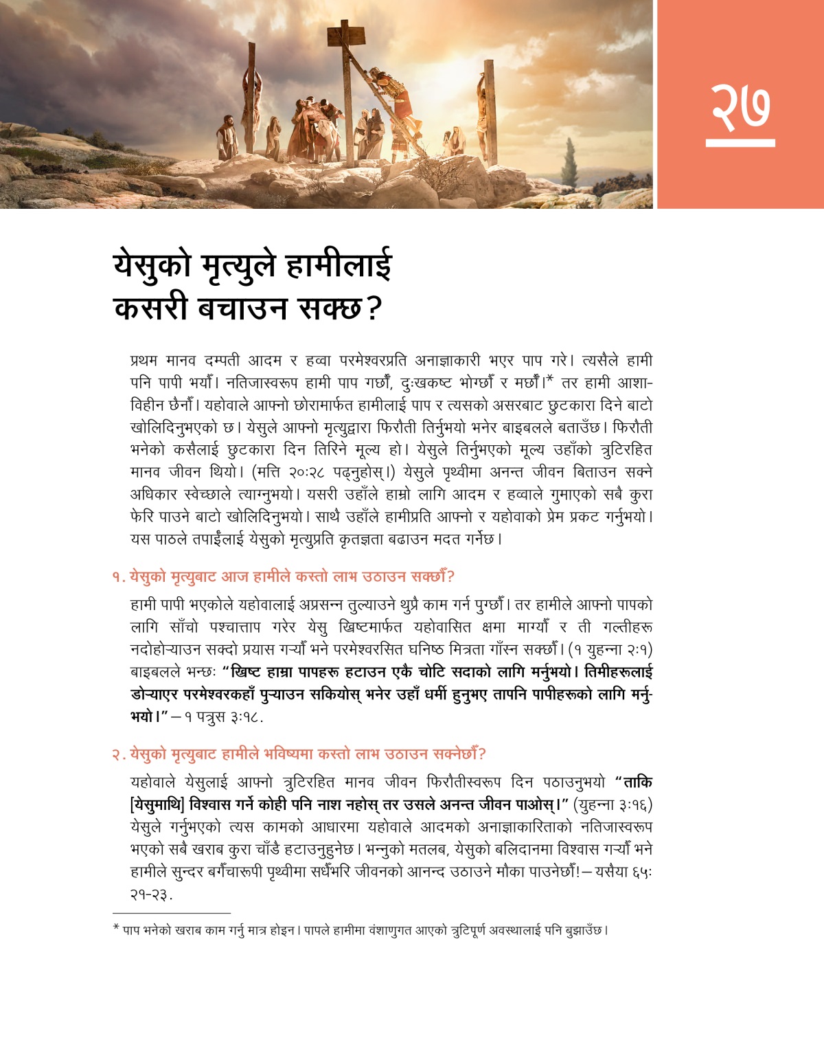 २. येसुको मृत्युबाट हामीले भविष्यमा कस्तो लाभ उठाउन सक्नेछौँ?