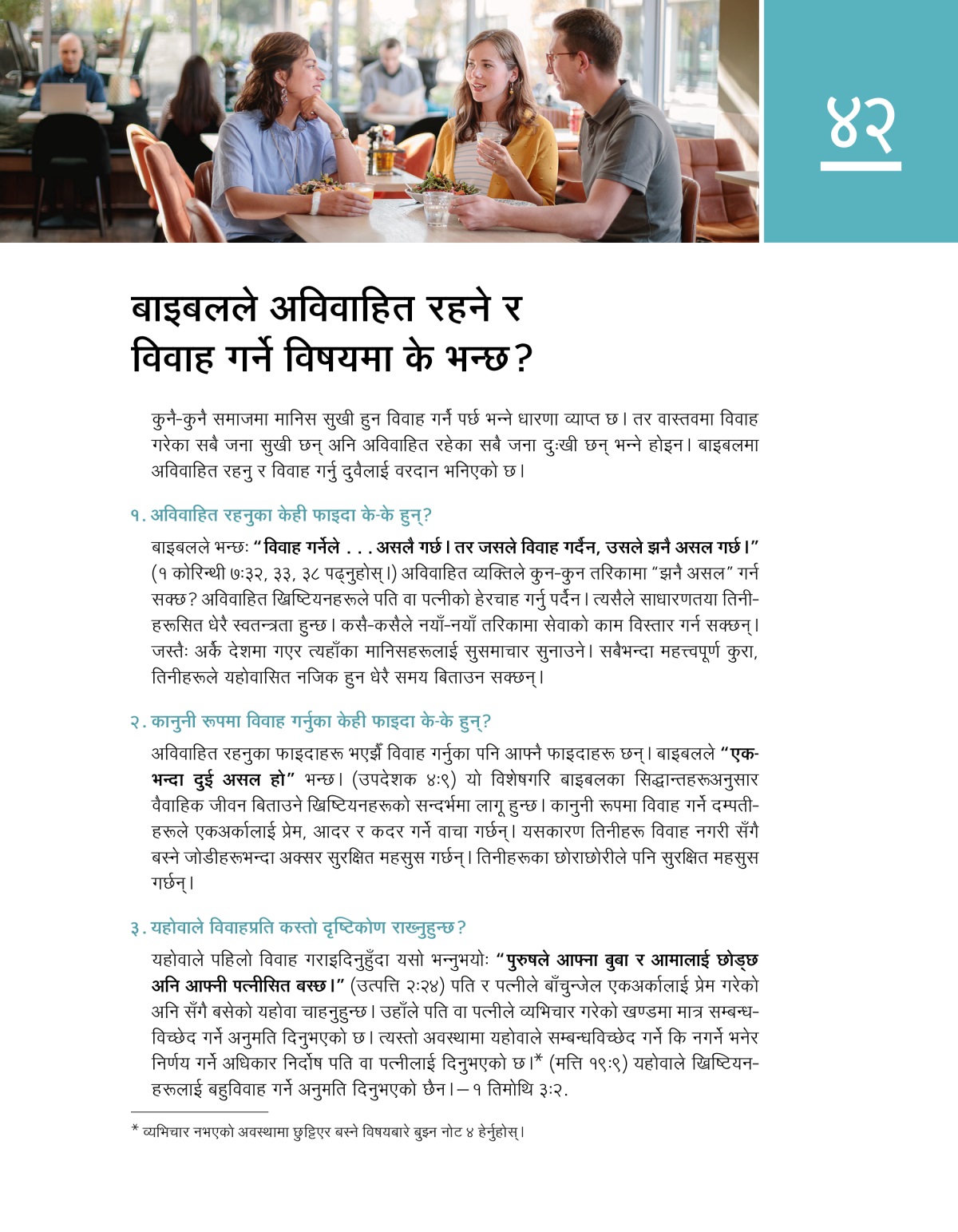अविवाहित रहनु र विवाह गर्नु दुवै यहोवाका वरदान हुन्। अविवाहित होऊन् वा विवाहित, सबैले यहोवाको इच्छाअनुरूप जीवन बिताउँदा आनन्द र सन्तुष्टि पाउन सक्छन्।