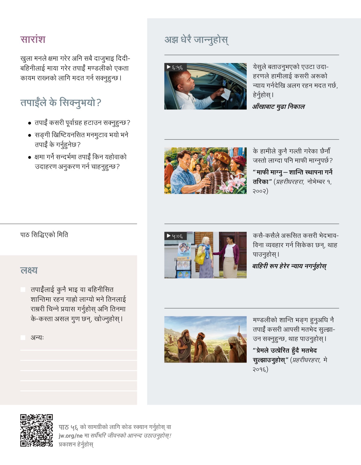 “प्रेमले उत्प्रेरित हुँदै मतभेद सुल्झाउनुहोस्” (प्रहरीधरहरा, मे २०१६)