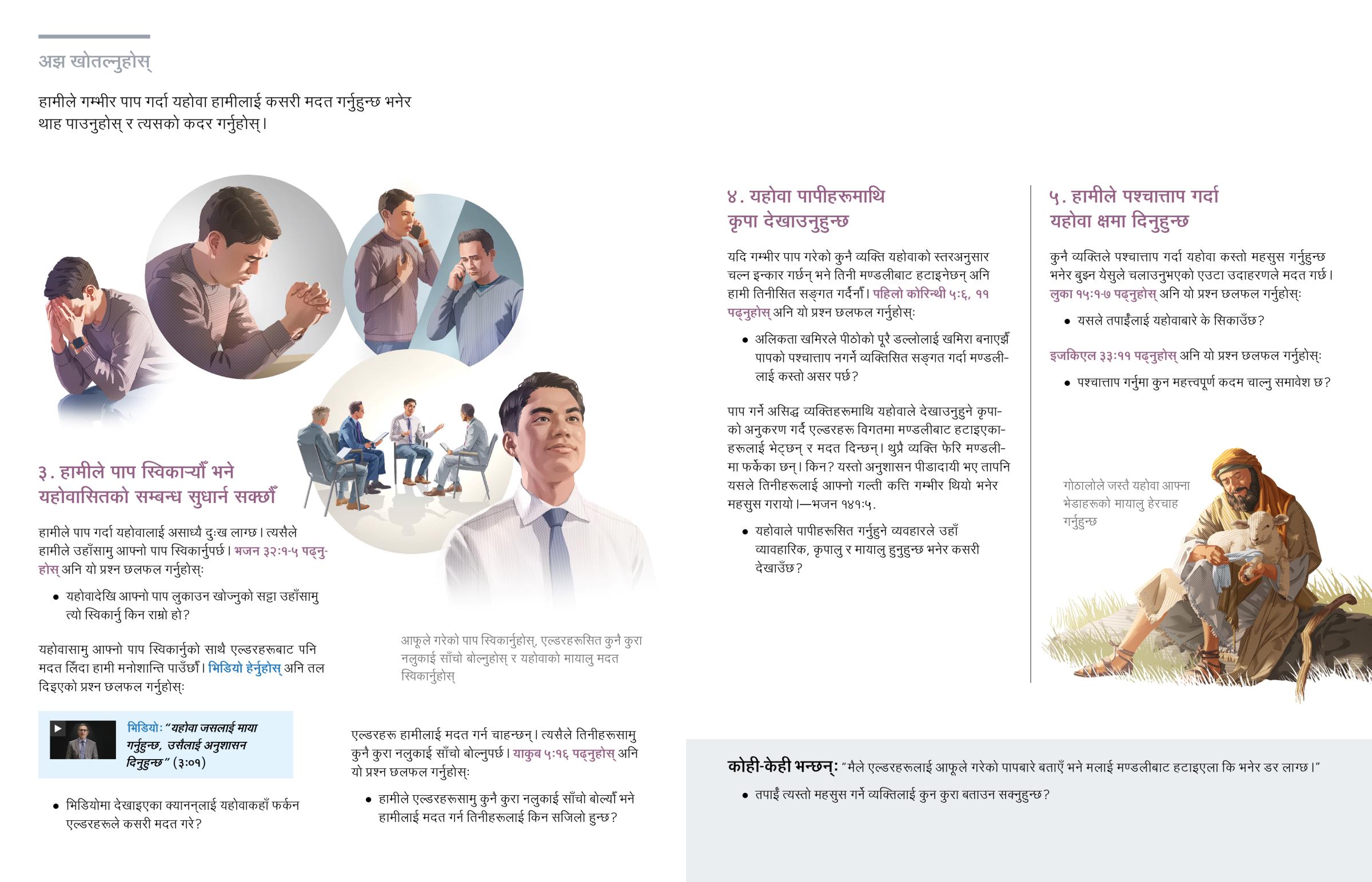 यहोवासामु आफ्नो पाप स्विकार्नुको साथै एल्डरहरूबाट पनि मदत लिँदा हामी मनोशान्ति पाउँछौँ। भिडियो हेर्नुहोस् अनि तल दिइएको प्रश्न छलफल गर्नुहोस्:
