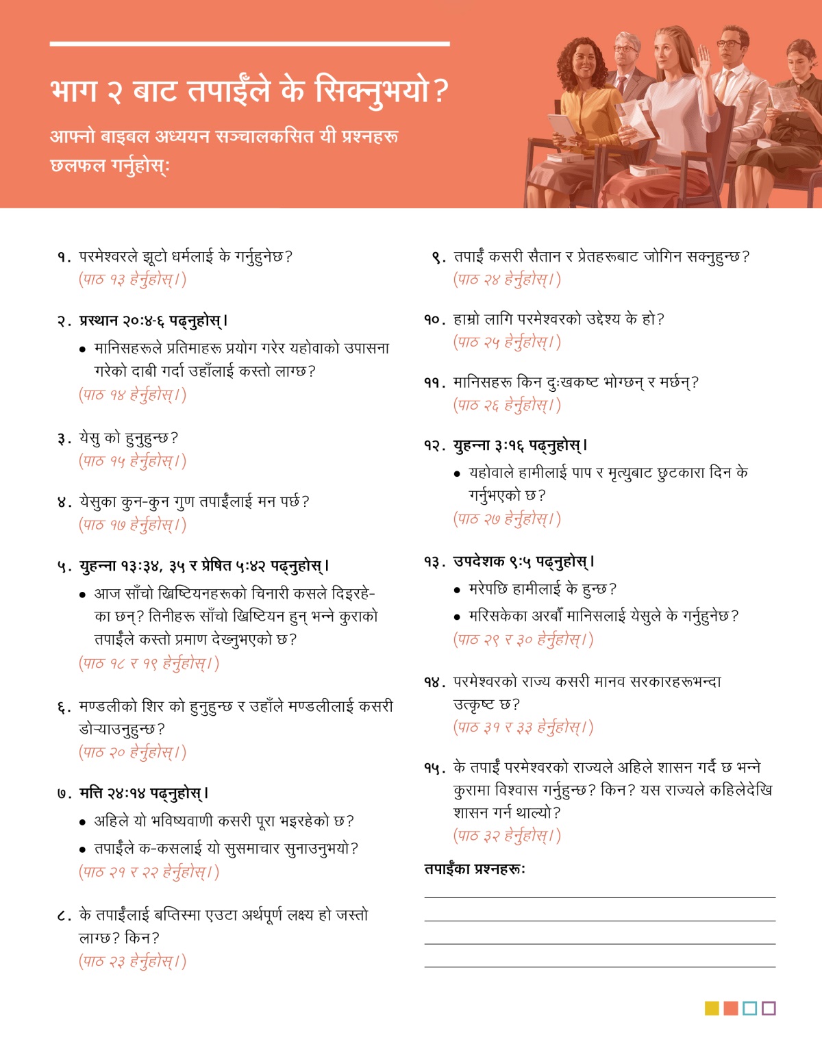 आफ्नो बाइबल अध्ययन सञ्चालकसित यी प्रश्नहरू छलफल गर्नुहोस्: