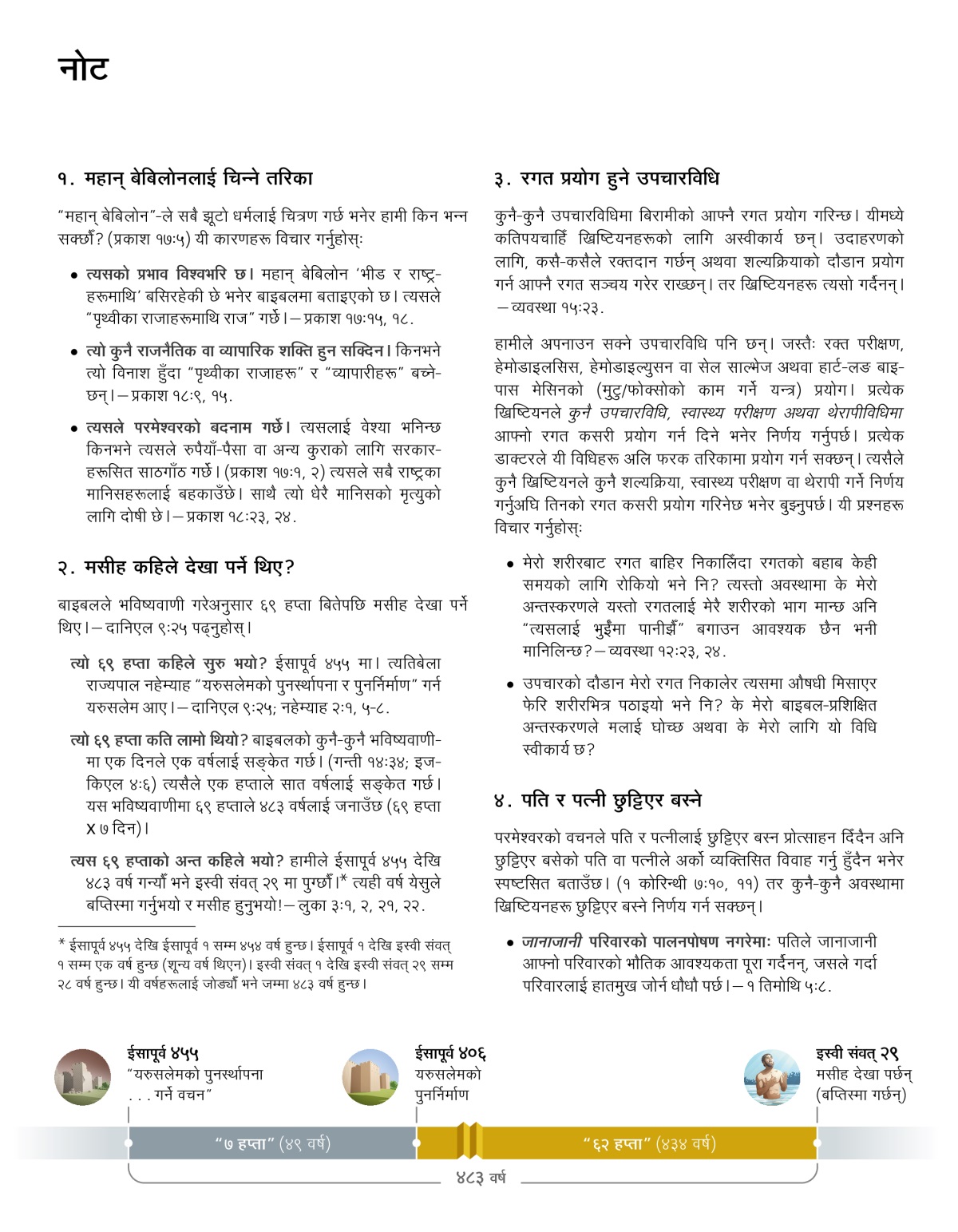त्यो ६९ हप्ता कति लामो थियो? बाइबलको कुनै-कुनै भविष्यवाणीमा एक दिनले एक वर्षलाई सङ्केत गर्छ। (गन्ती १४:३४; इजकिएल ४:६) त्यसैले एक हप्ताले सात वर्षलाई सङ्केत गर्छ। यस भविष्यवाणीमा ६९ हप्ताले ४८३ वर्षलाई जनाउँछ (६९ हप्ता x ७ दिन)।