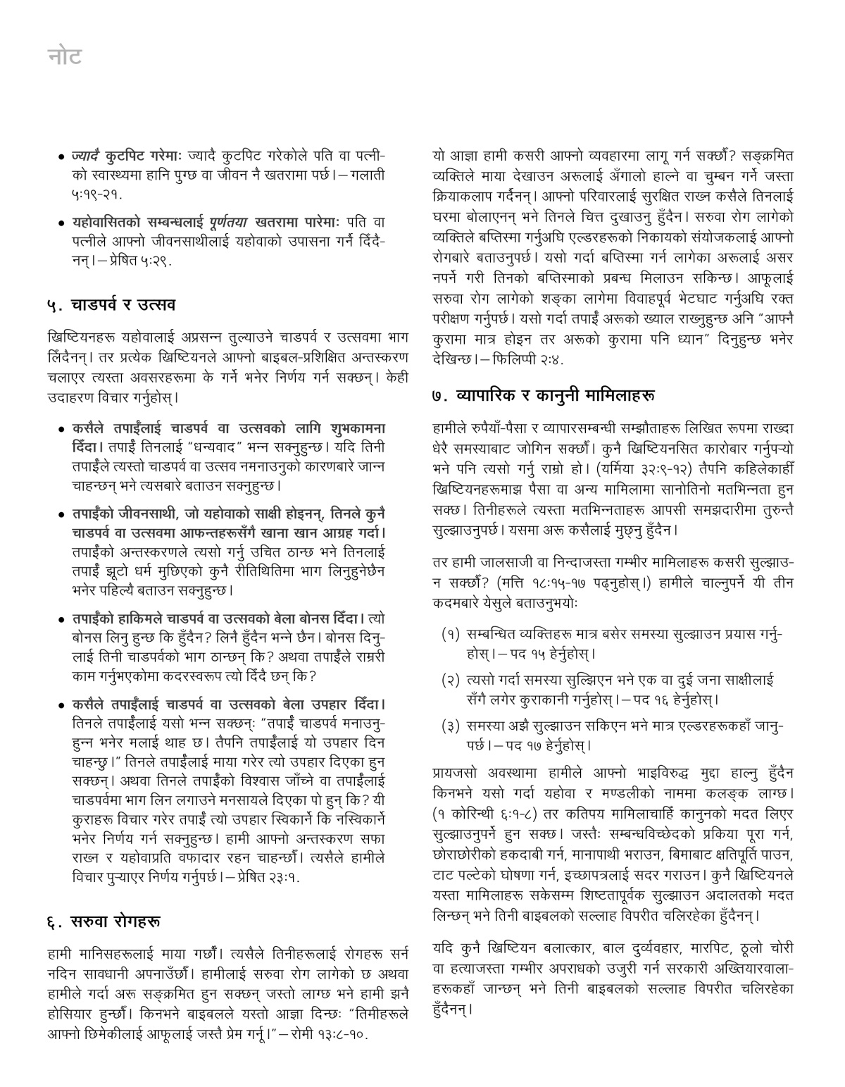 तपाईँको जीवनसाथी, जो यहोवाको साक्षी होइनन्, तिनले कुनै चाडपर्व वा उत्सवमा आफन्तहरूसँगै खाना खान आग्रह गर्दा। तपाईँको अन्तस्करणले त्यसो गर्नु उचित ठान्छ भने तिनलाई तपाईँ झूटो धर्म मुछिएको कुनै रीतिथितिमा भाग लिनुहुनेछैन भनेर पहिल्यै बताउन सक्नुहुन्छ।