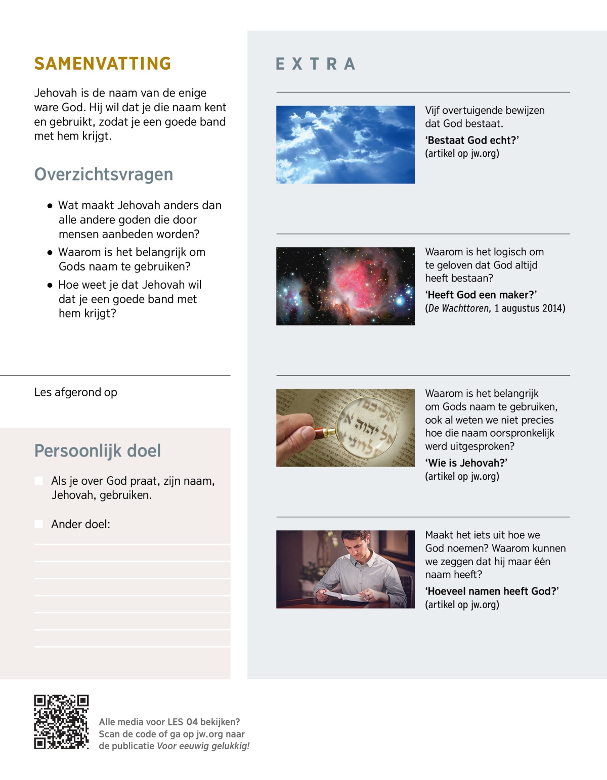 4. Jehovah wil dat je zijn naam kent en gebruikt