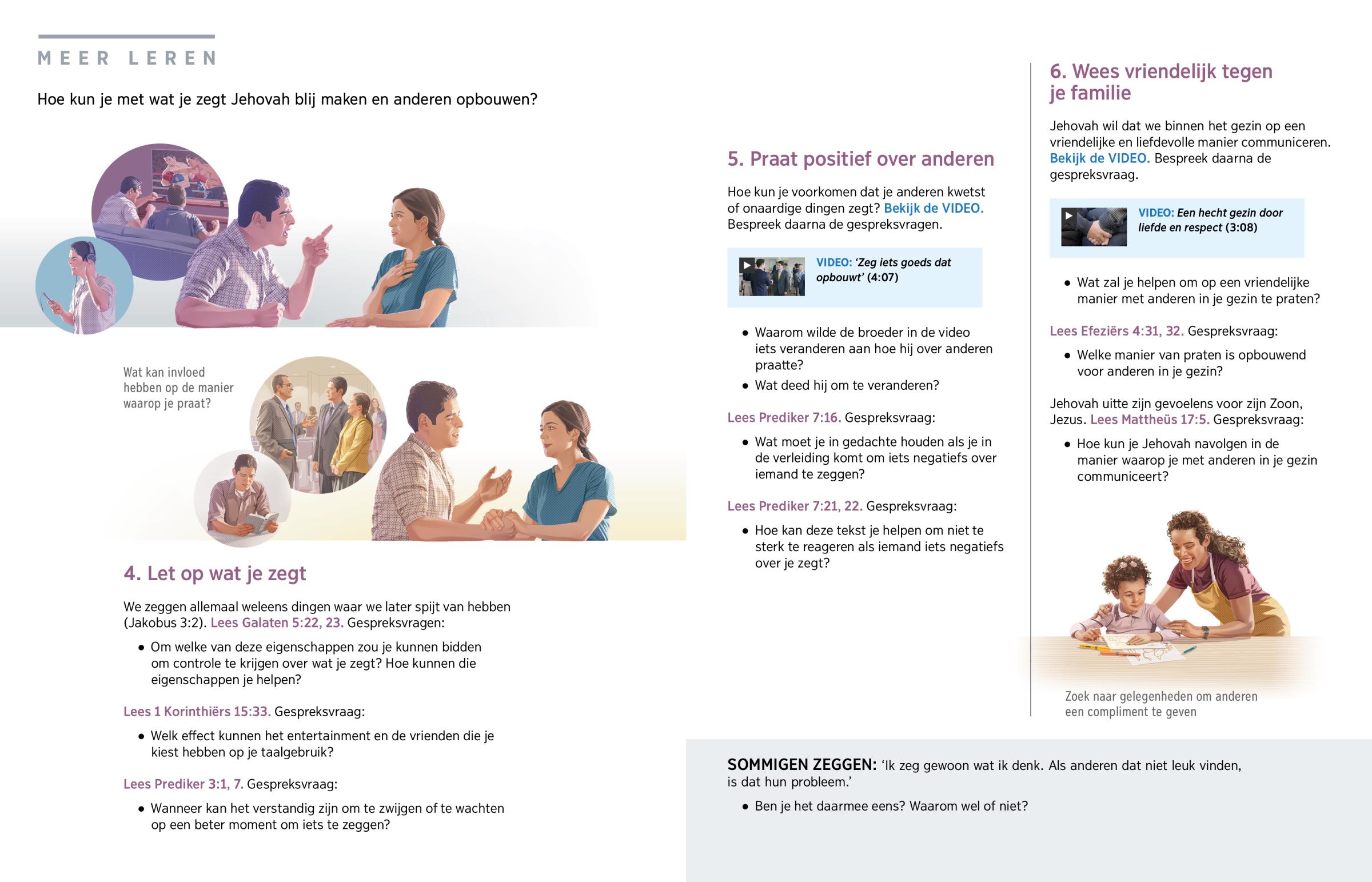 Jehovah wil dat we binnen het gezin op een vriendelijke en liefdevolle manier communiceren. Bekijk de VIDEO. Gespreksvraag: