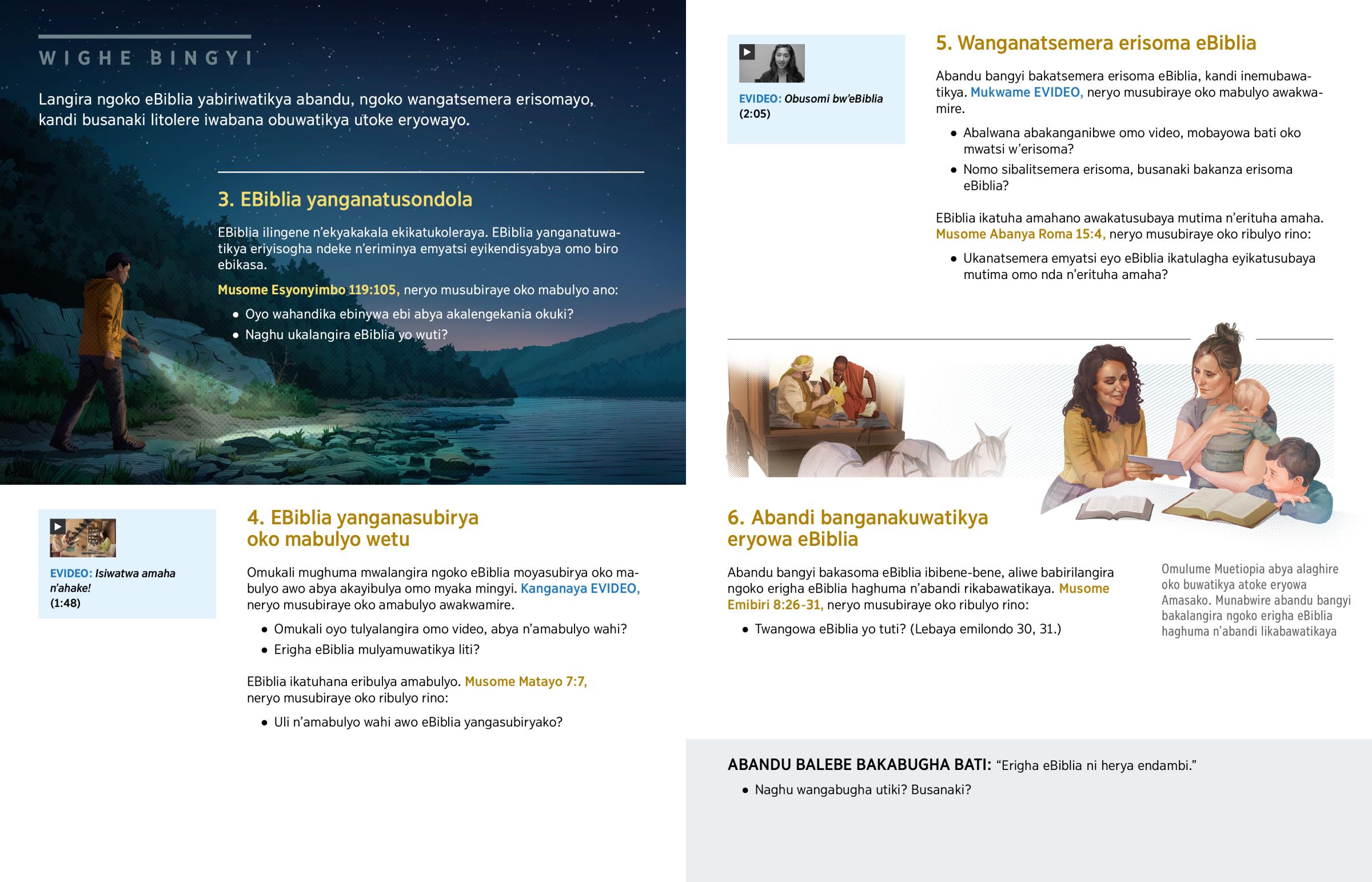 Ekitabu kino sikirimaya omwanya w’eBiblia. Aliwe, kikakuwatikaya erigha eBiblia iwuwene-wene. Busana n’ekyo, tukakuhana eribya ukasoma amasako awakabanika omo syosomo n’erilangira ng’ahambene ati n’emyatsi eyo ukigha.