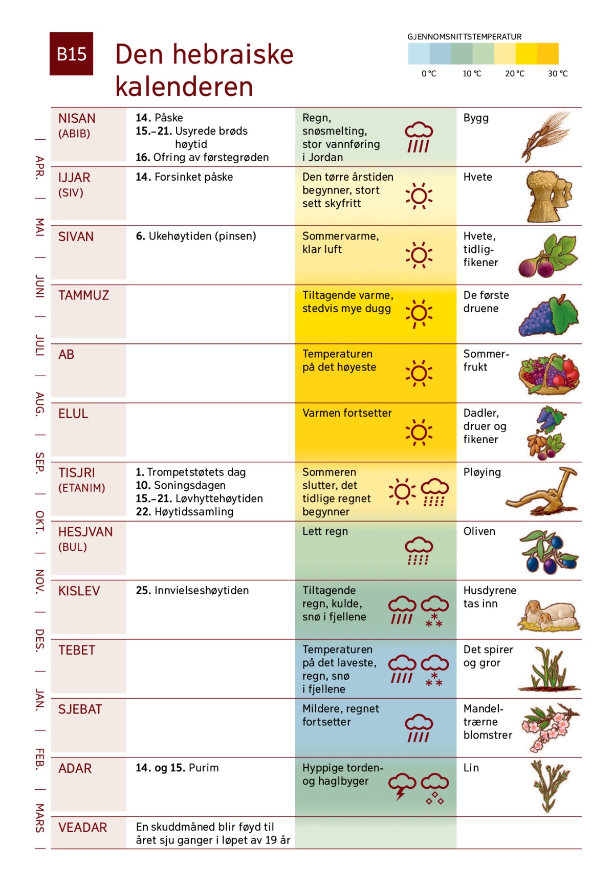 14. Påske 15.–21. Usyrede brøds høytid 16. Ofring av førstegrøden |