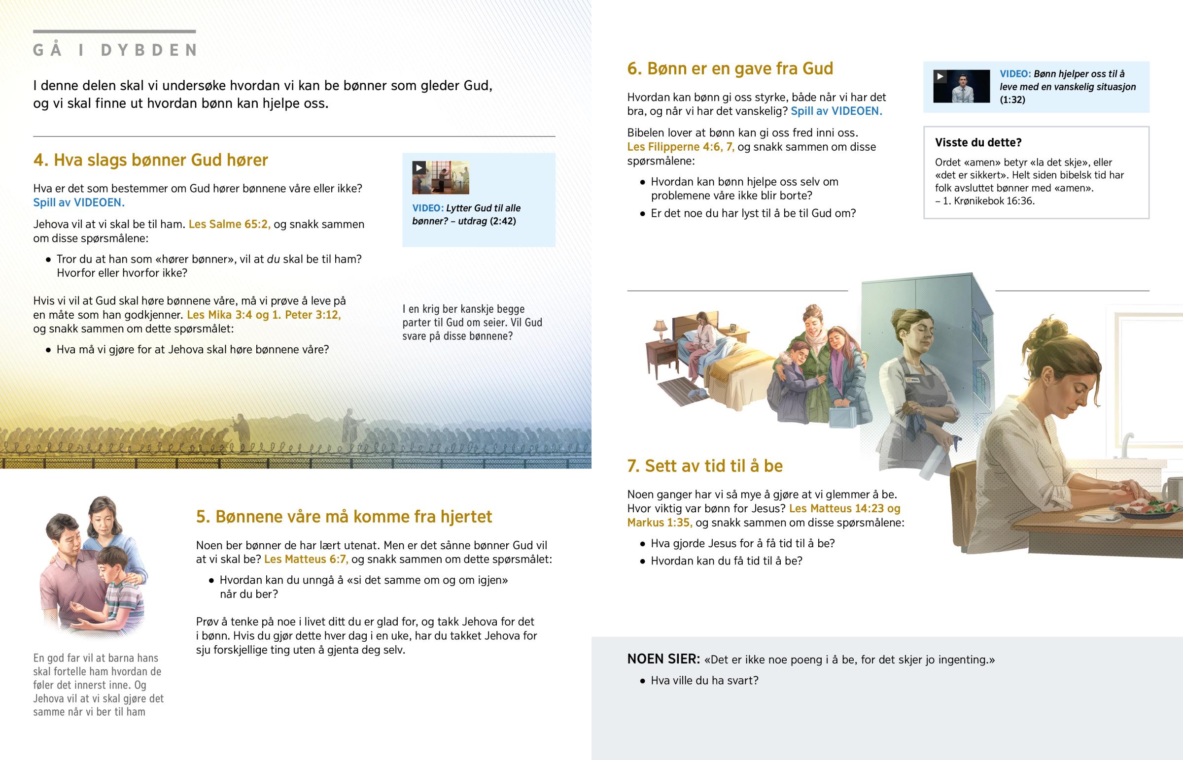 I denne delen skal vi undersøke hvordan vi kan be bønner som gleder Gud, og vi skal finne ut hvordan bønn kan hjelpe oss.