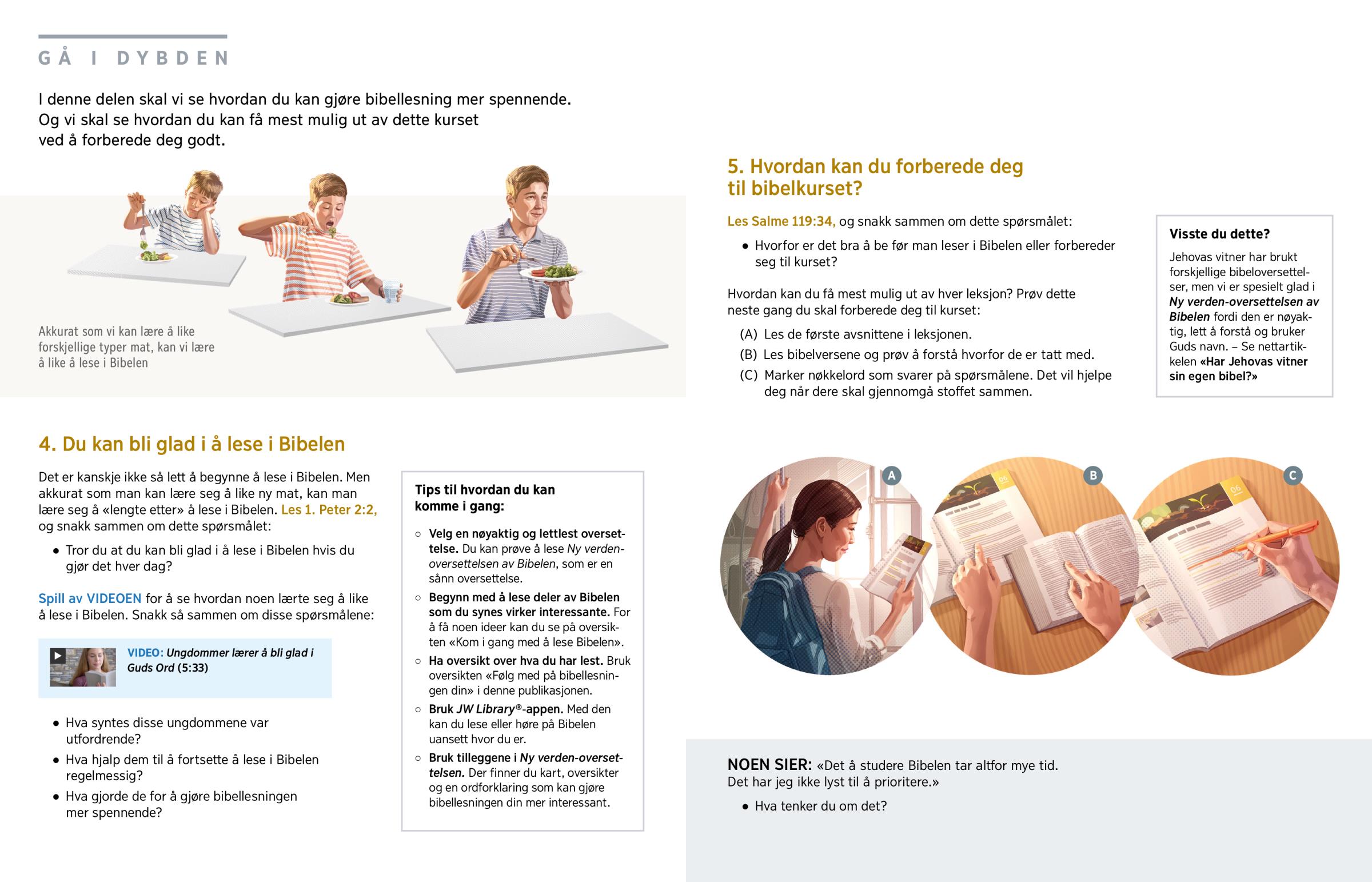 I denne delen skal vi se hvordan du kan gjøre bibellesning mer spennende. Og vi skal se hvordan du kan få mest mulig ut av dette kurset ved å forberede deg godt.