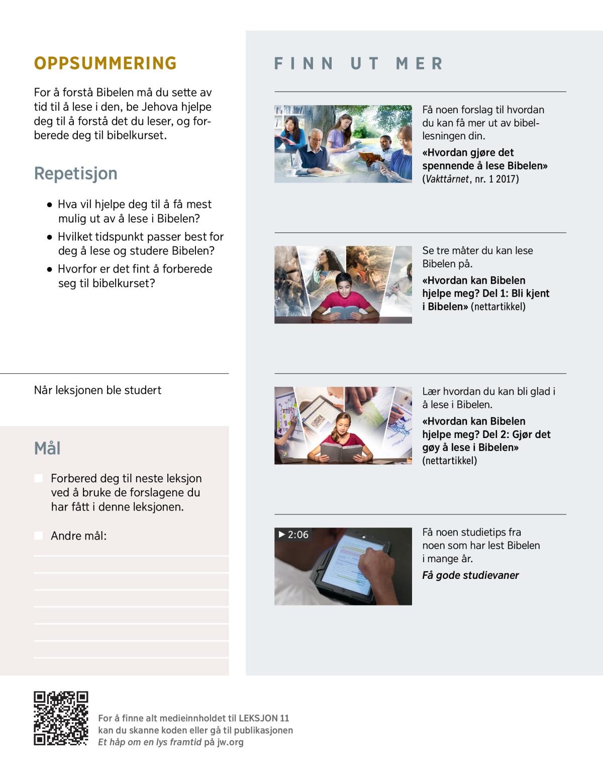 2. Hva kan du gjøre for å få mest mulig ut av bibellesningen din?