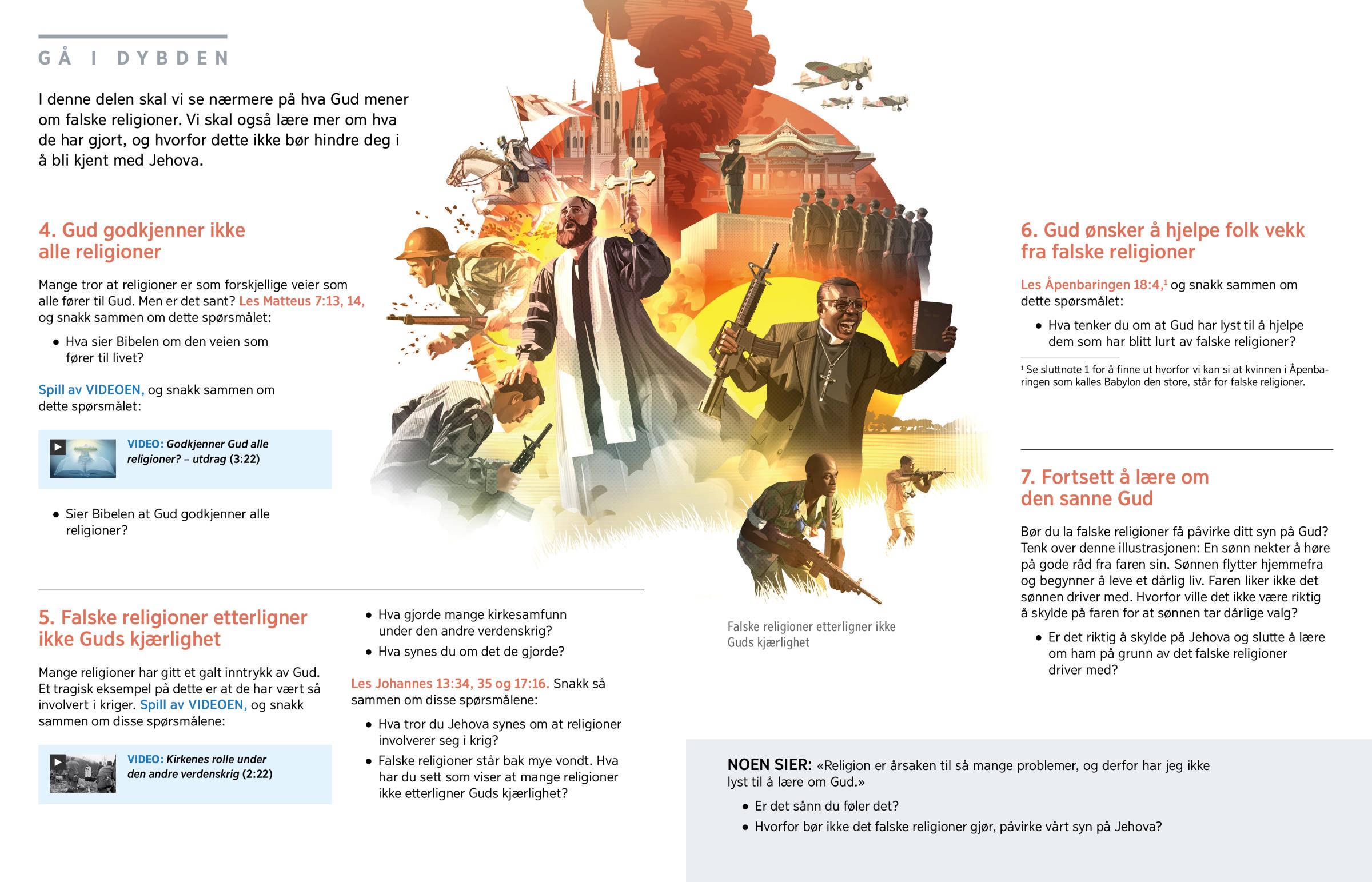 I denne delen skal vi se nærmere på hva Gud mener om falske religioner. Vi skal også lære mer om hva de har gjort, og hvorfor dette ikke bør hindre deg i å bli kjent med Jehova.