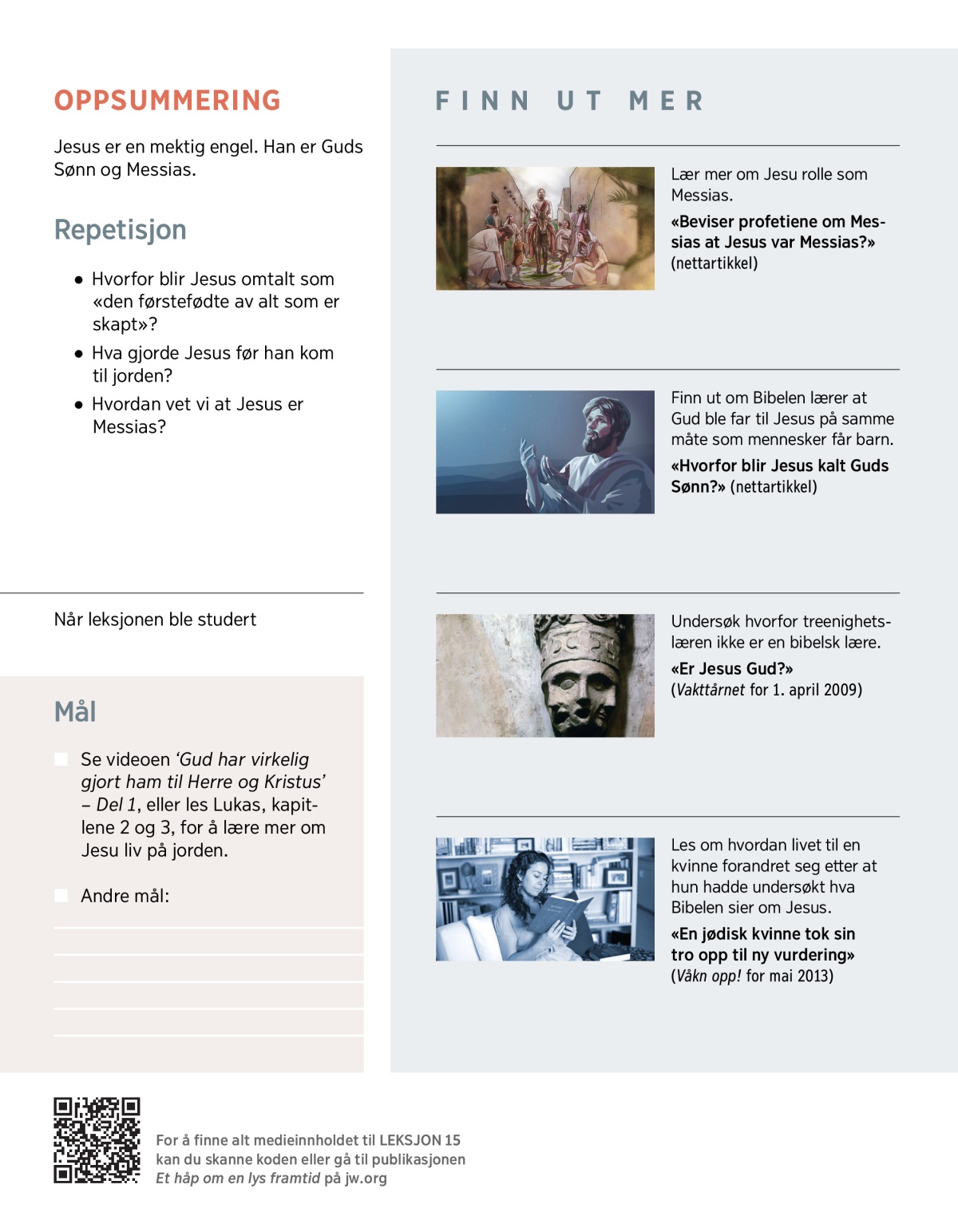 Bibelen understreker hvor viktig det er å lære om Jesus og hvilken rolle han har. Les Johannes 14:6 og 17:3, og snakk sammen om dette spørsmålet:
