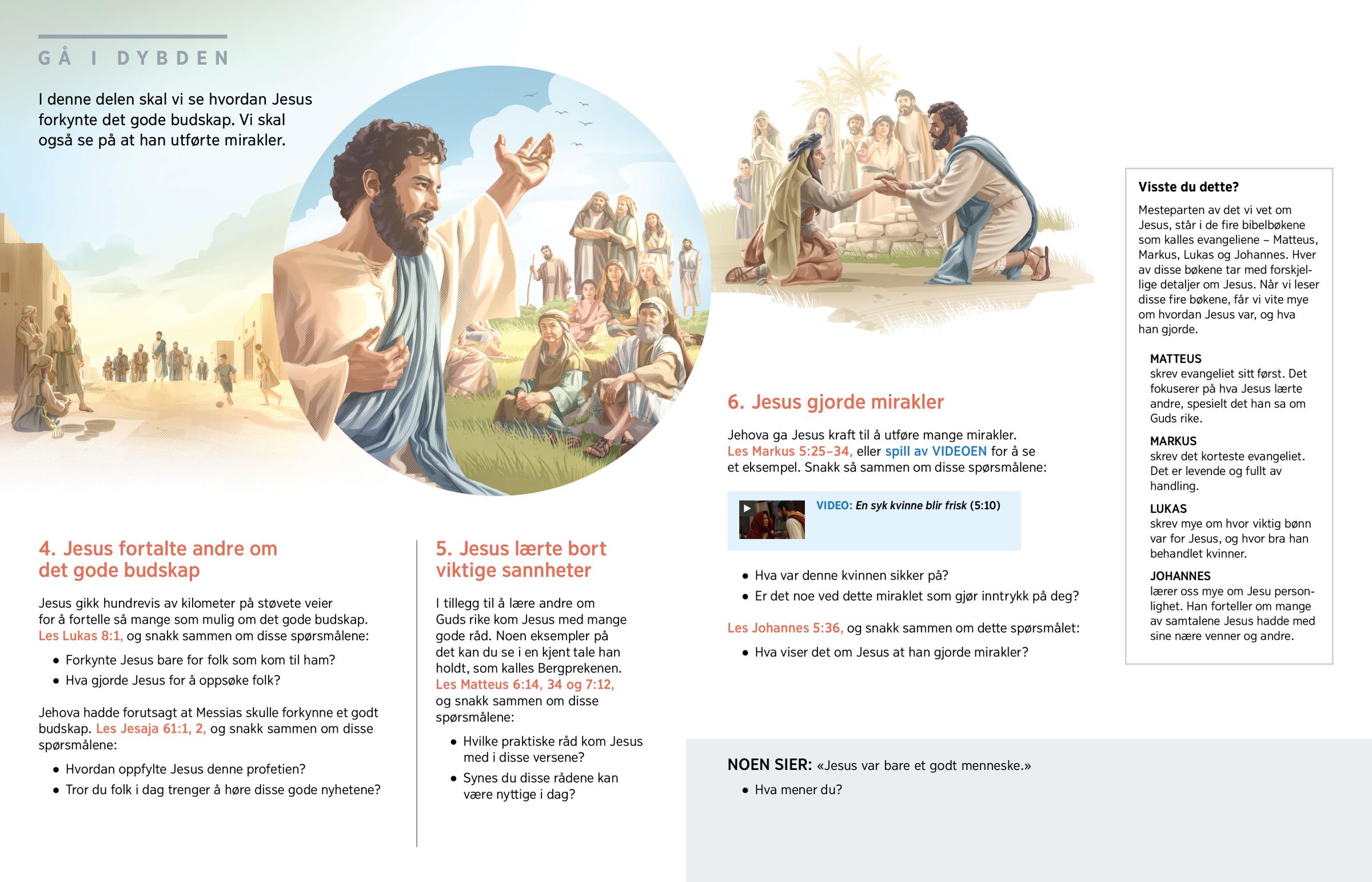 I denne delen skal vi se hvordan Jesus forkynte det gode budskap. Vi skal også se på at han utførte mirakler.