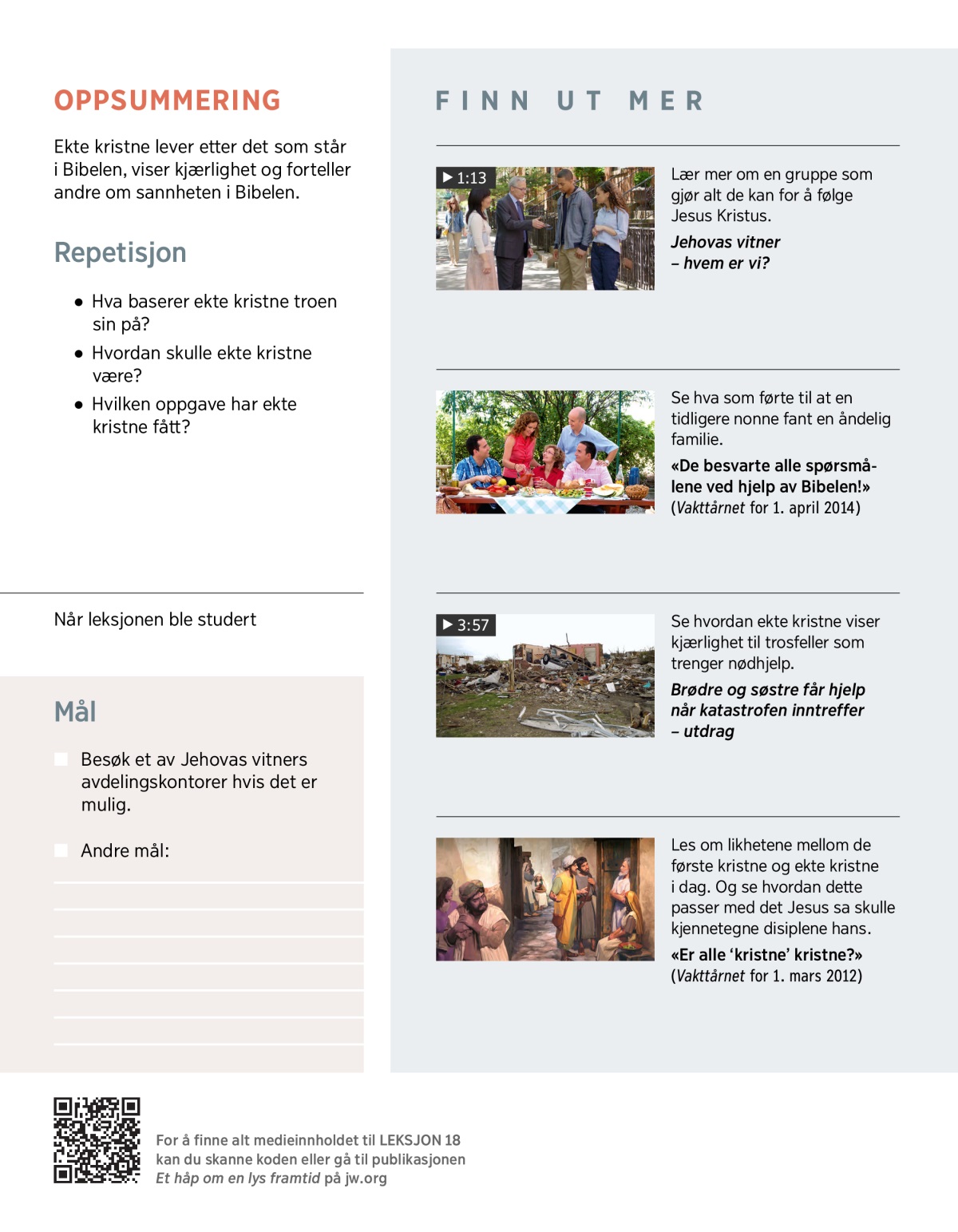 Ekte kristne lever etter det som står i Bibelen, viser kjærlighet og forteller andre om sannheten i Bibelen.