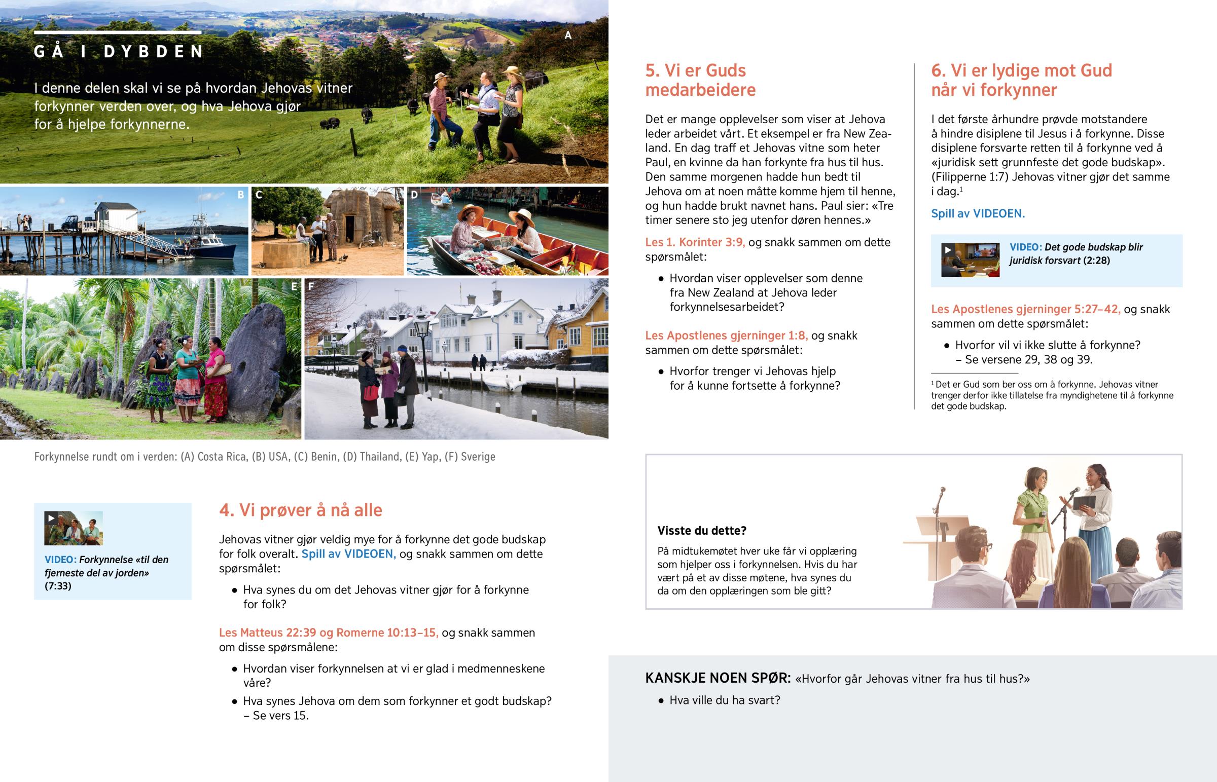 Forkynnelse rundt om i verden: (A) Costa Rica, (B) USA, (C) Benin, (D) Thailand, (E) Yap, (F) Sverige