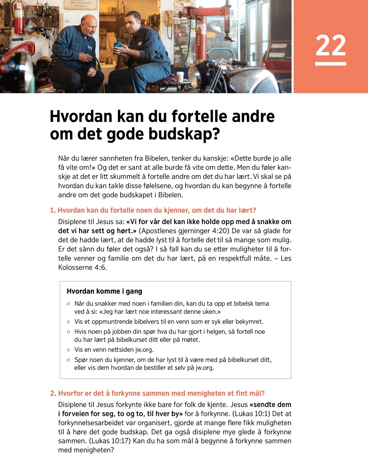 Hvis noen på jobben din spør hva du har gjort i helgen, så fortell noe du har lært på bibelkurset ditt eller på møtet.