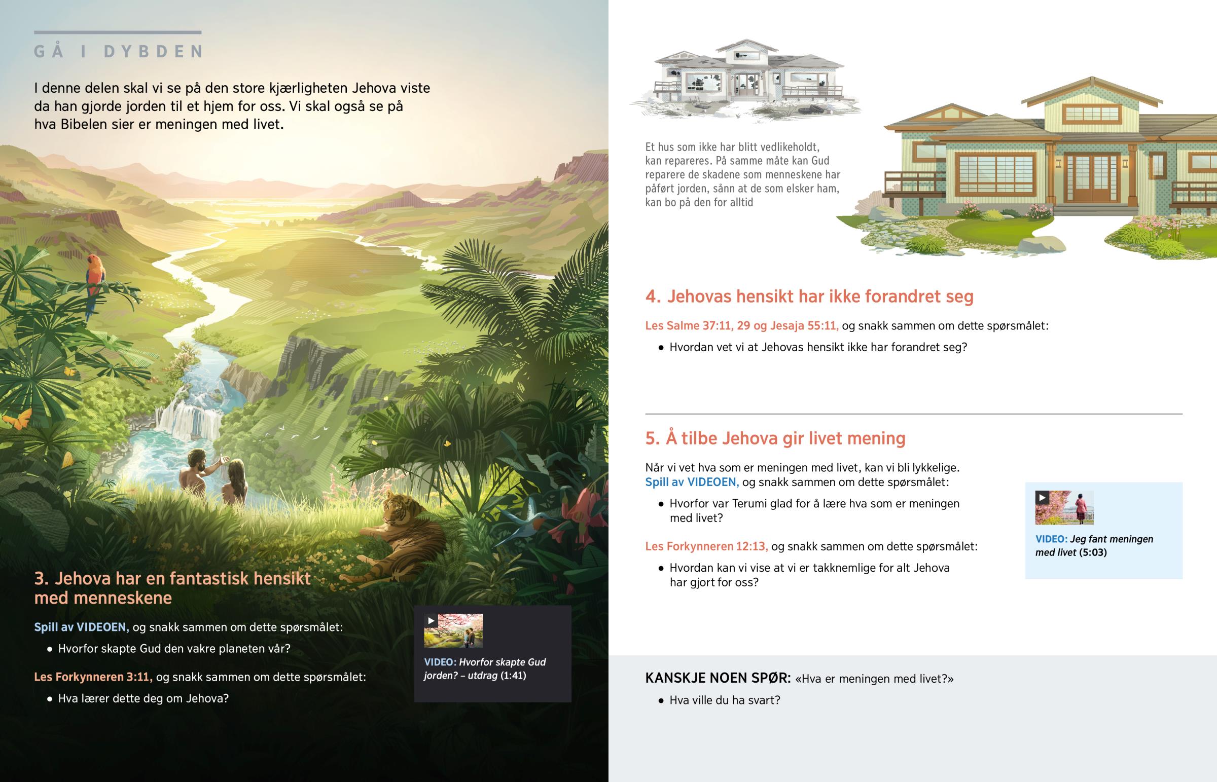 I denne delen skal vi se på den store kjærligheten Jehova viste da han gjorde jorden til et hjem for oss. Vi skal også se på hva Bibelen sier er meningen med livet.