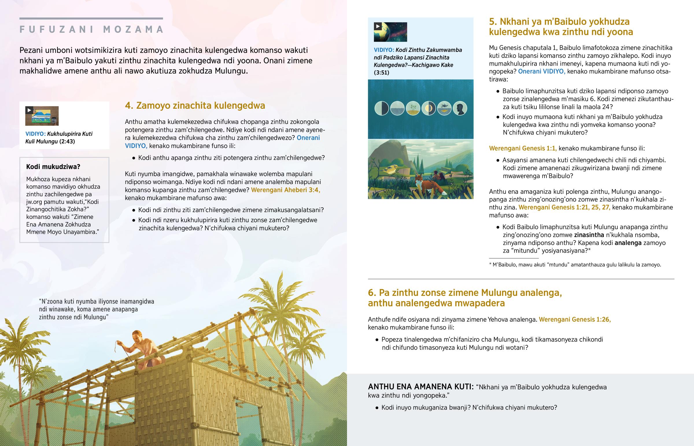 Mu Genesis chaputala 1, Baibulo limafotokoza zimene zinachitika kuti dziko lapansi komanso zinthu zamoyo zikhalepo. Kodi inuyo mumakhulupirira nkhani imeneyi, kapena mumaona kuti ndi yongopeka? Onerani VIDIYO, kenako mukambirane mafunso otsatirawa: