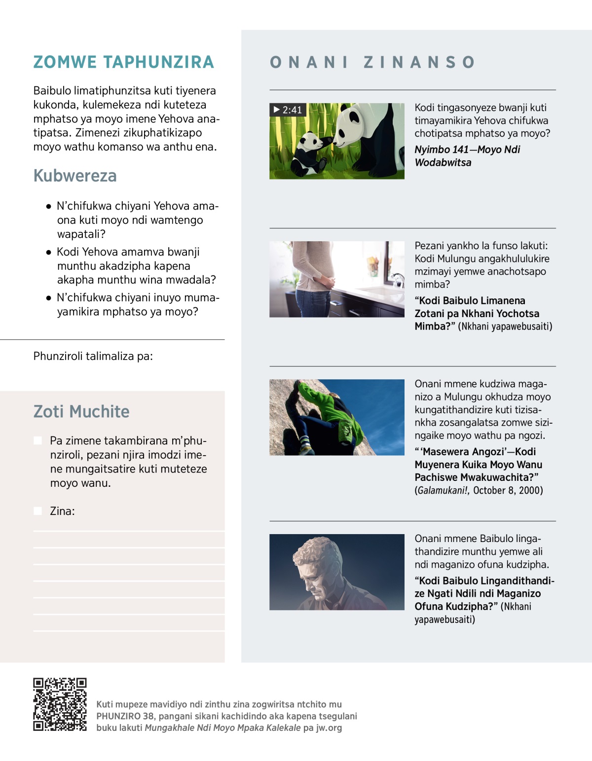 Anthufe timatha kuchita komanso kusangalala ndi zinthu zosiyanasiyana chifukwa choti tili ndi moyo. Ngakhale kuti timakumana ndi mavuto koma nthawi zambiri timatha kusangalala ndi zinthu zina pa moyo wathu. Ndiye kodi tingasonyeze bwanji kuti timayamikira Yehova chifukwa chotipatsa mphatso ya moyo? Nanga n’chifukwa chiyani tikufunika kuchita zimenezi?