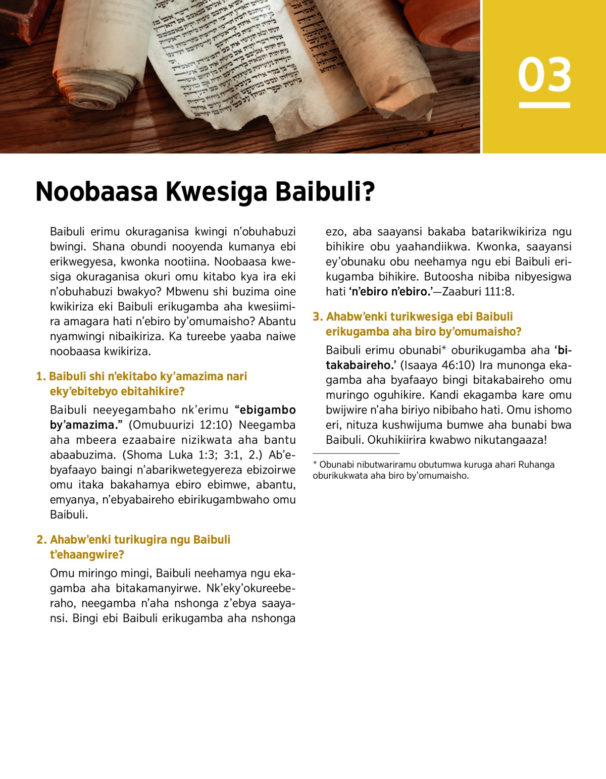 3. Ahabw’enki turikwesiga ebi Baibuli erikugamba aha biro by’omumaisho?