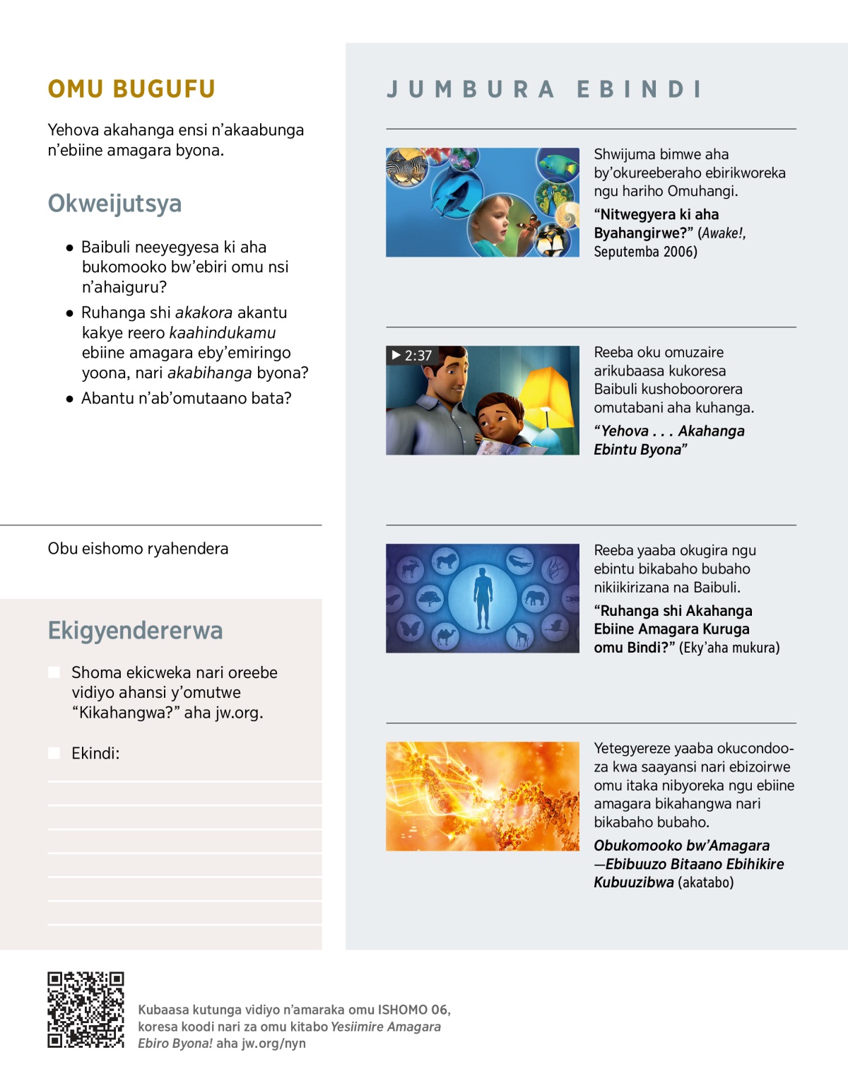 “Ruhanga shi Akahanga Ebiine Amagara Kuruga omu Bindi?” (Eky’aha mukura)