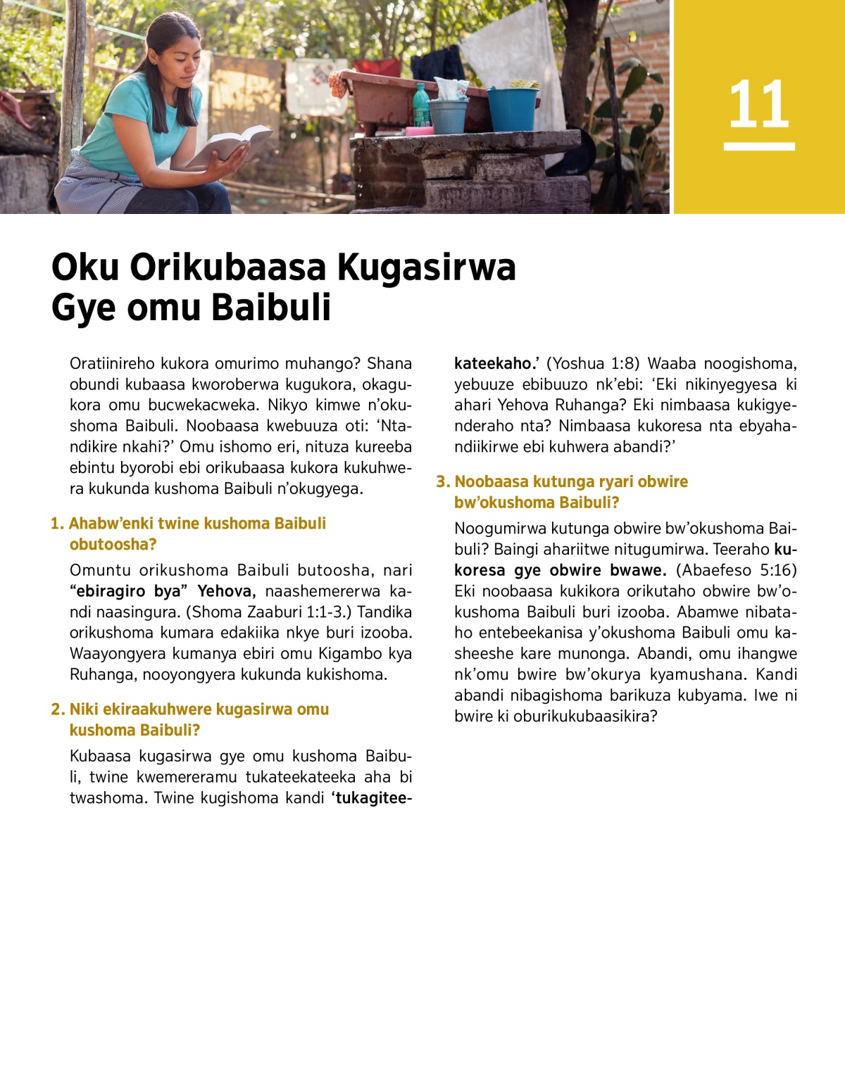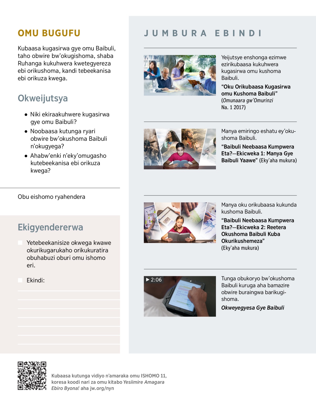Yeijutsye enshonga ezimwe ezirikubaasa kukuhwera kugasirwa omu kushoma Baibuli.