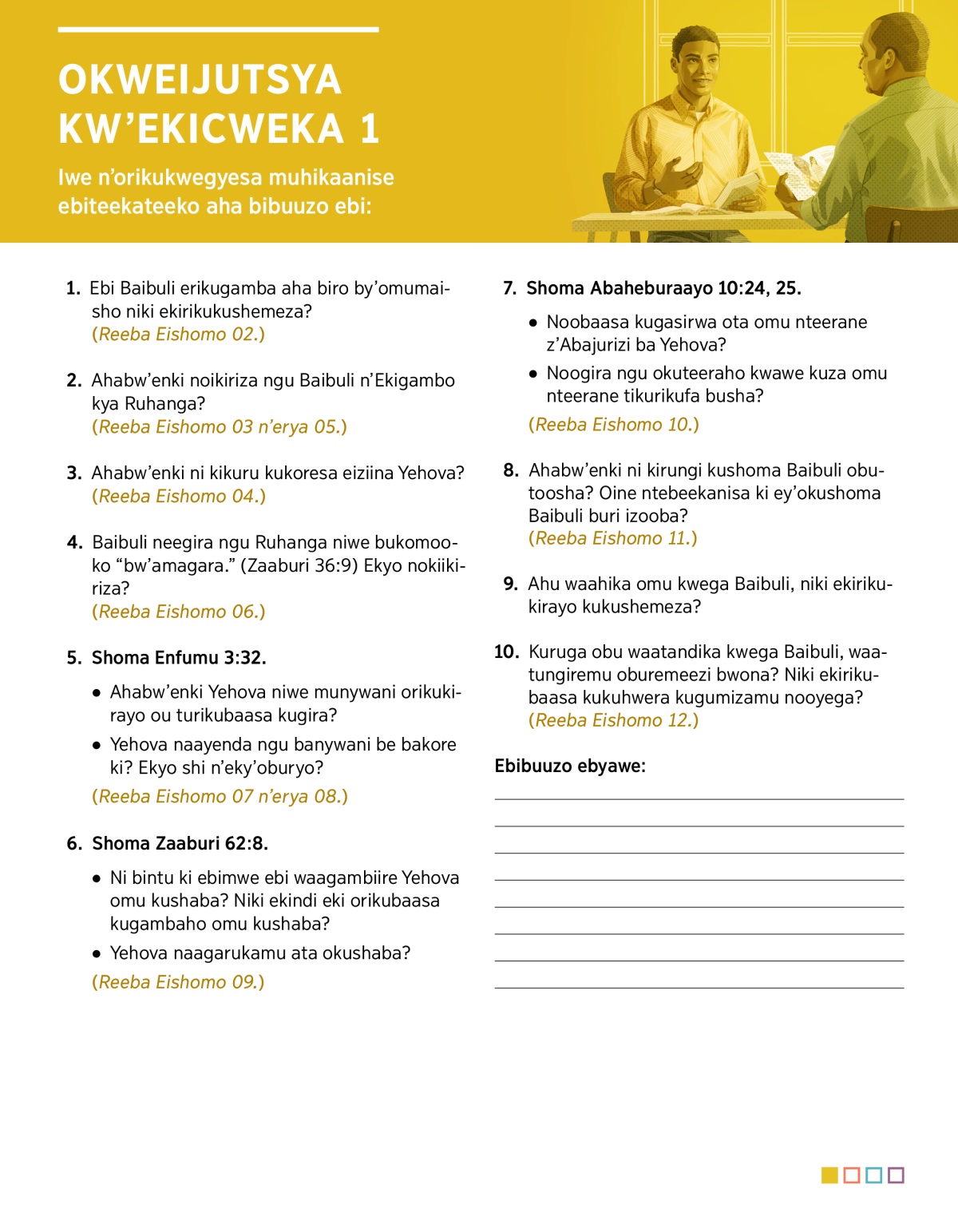 Iwe n’orikukwegyesa muhikaanise ebiteekateeko aha bibuuzo ebi:
