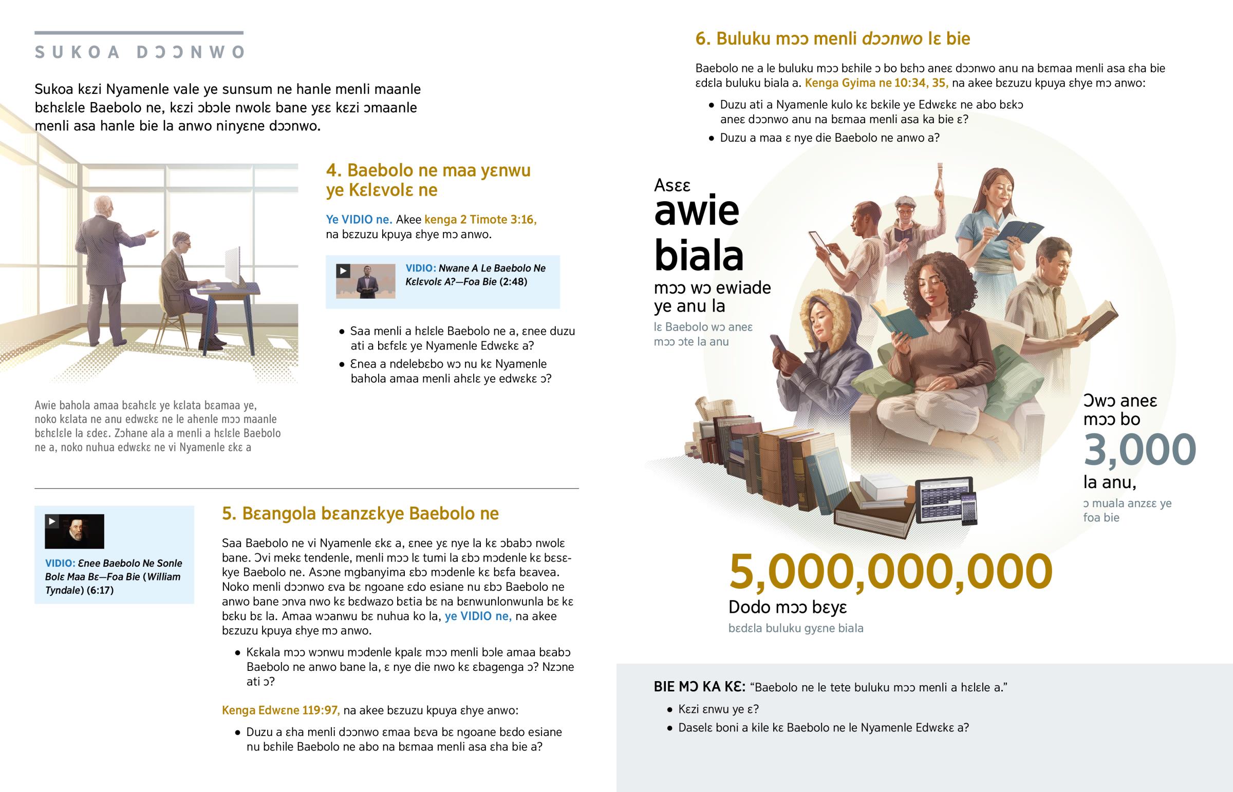 Sukoa kɛzi ninyɛne nsa mɔɔ anrɛɛ bɛdua zo bɛazɛkye Baebolo ne anyɛ boɛ la.