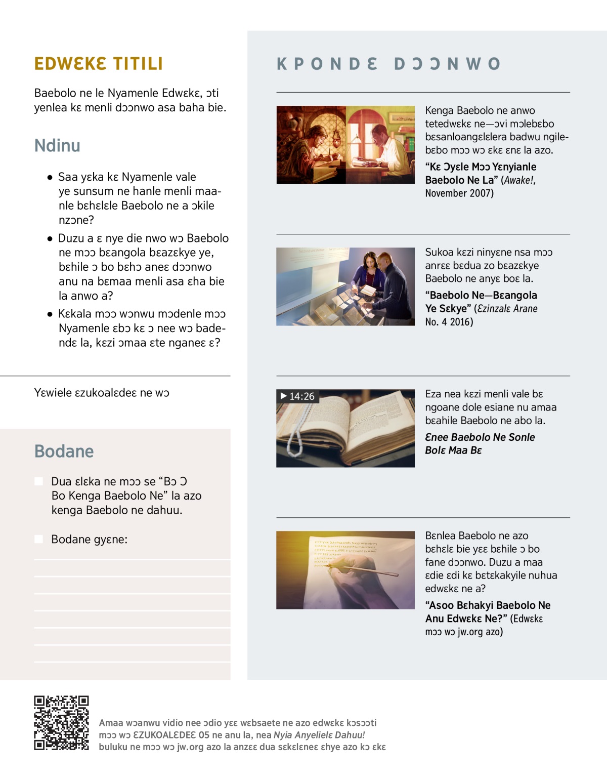 “Asoo Bɛhakyi Baebolo Ne Anu Edwɛkɛ Ne?” (Edwɛkɛ mɔɔ wɔ jw.org azo)