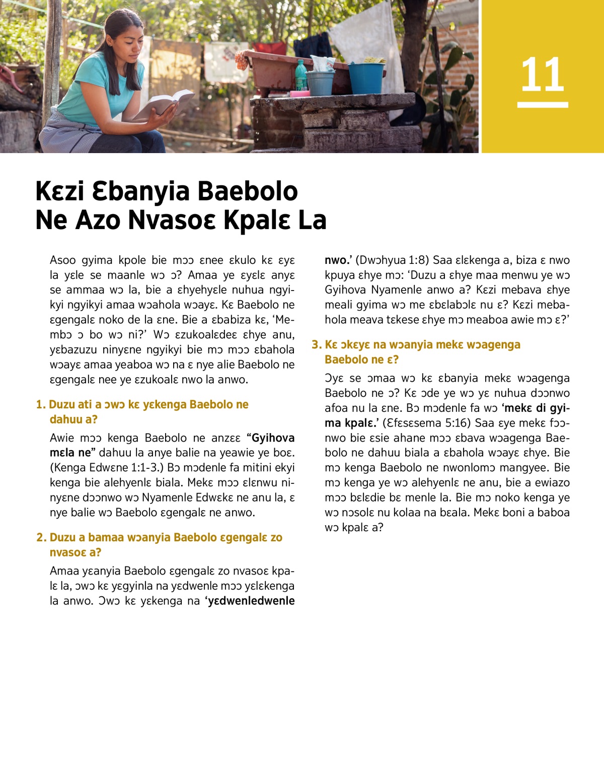 Kɛ mɔɔ yɛsukoa aleɛ ngakyile ɛlilɛ na yɛ nye die nwo la, zɔhane ala a yɛ nye kola die Baebolo ne ɛgengalɛ nwo a