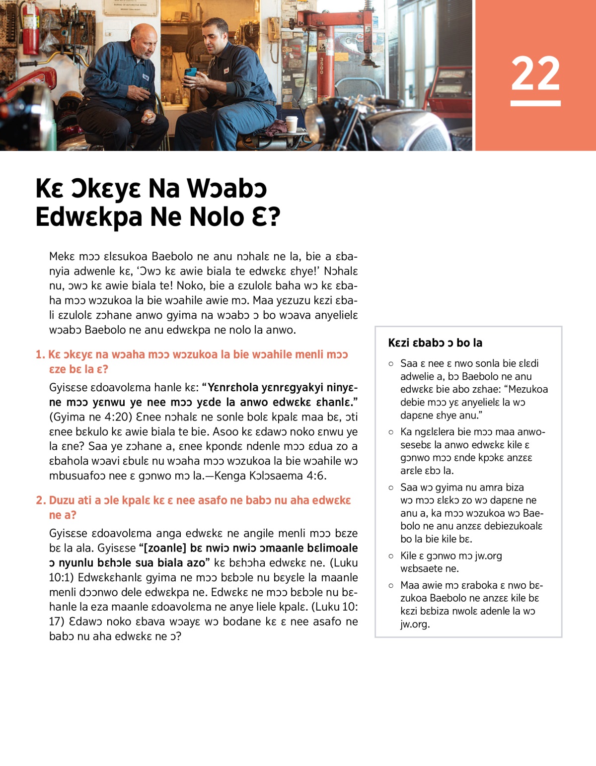 Nea adenle sikalɛ nna mɔɔ ɛbahola wɔalua zo wɔava jw.org ngitanwolilɛ kaade ne wɔabɔ edwɛkpa ne nolo la.