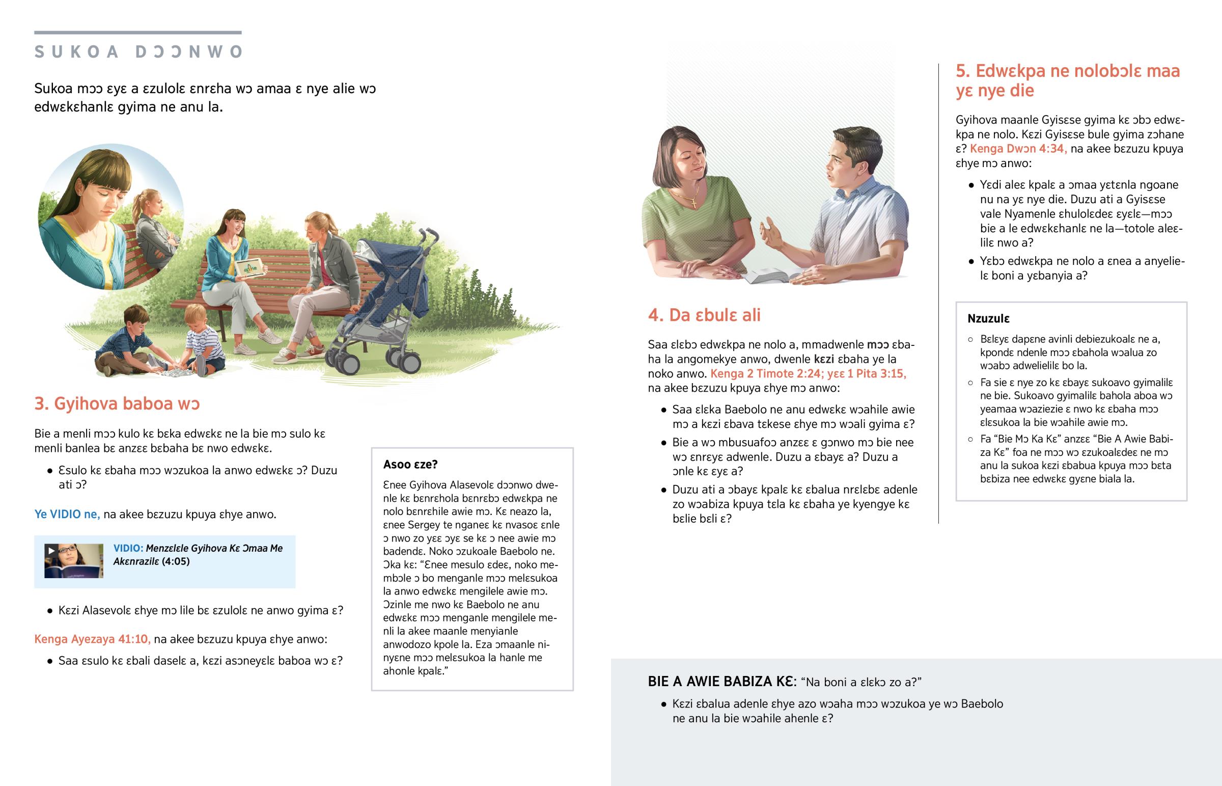 Maa awie mɔ ɛraboka ɛ nwo bɛzukoa Baebolo ne anzɛɛ kile bɛ kɛzi bɛbiza nwolɛ adenle la wɔ jw.org.