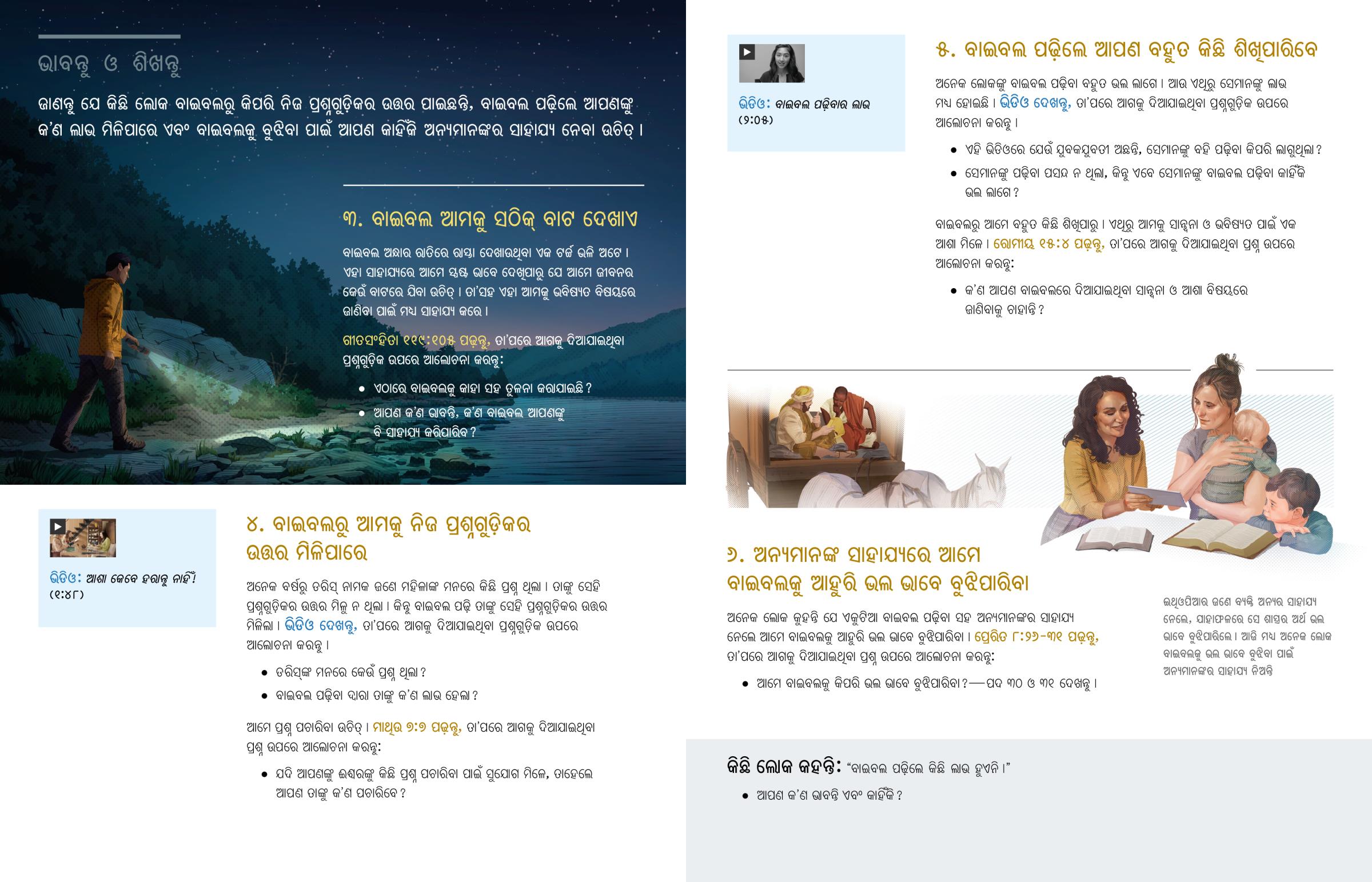 ଅନେକ ଲୋକଙ୍କୁ ବାଇବଲ ପଢ଼ିବା ବହୁତ ଭଲ ଲାଗେ । ଆଉ ଏଥିରୁ ସେମାନଙ୍କୁ ଲାଭ ମଧ୍ୟ ହୋଇଛି । ଭିଡିଓ ଦେଖନ୍ତୁ, ତାʼପରେ ଆଗକୁ ଦିଆଯାଇଥିବା ପ୍ରଶ୍ନଗୁଡ଼ିକ ଉପରେ ଆଲୋଚନା କରନ୍ତୁ ।