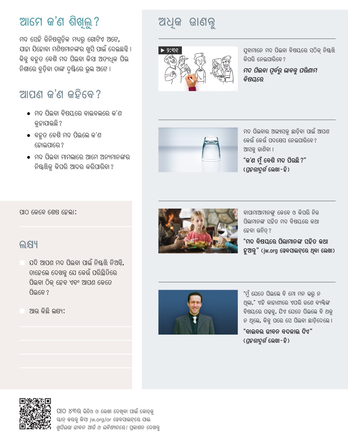 “ମଦ ବିଷୟରେ ପିଲାମାନଙ୍କ ସହିତ କଥା ହୁଅନ୍ତୁ” (jw.org ୱେବସାଇଟ୍ରେ ଥିବା ଲେଖା)