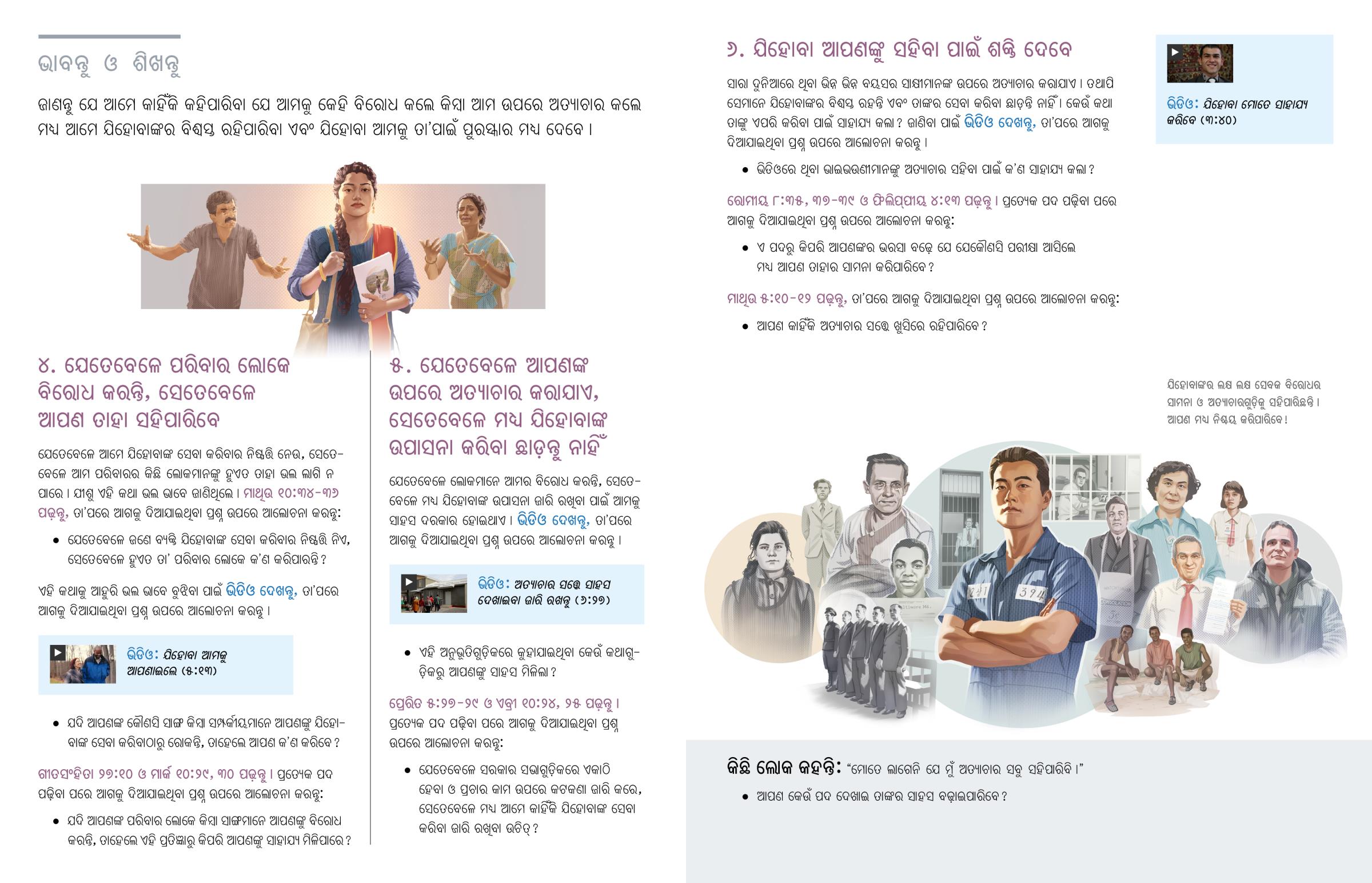 ଯେତେବେଳେ ଲୋକମାନେ ଆମର ବିରୋଧ କରନ୍ତି, ସେତେବେଳେ ମଧ୍ୟ ଯିହୋବାଙ୍କ ଉପାସନା ଜାରି ରଖିବା ପାଇଁ ଆମକୁ ସାହସ ଦରକାର ହୋଇଥାଏ । ଭିଡିଓ ଦେଖନ୍ତୁ, ତାʼପରେ ଆଗକୁ ଦିଆଯାଇଥିବା ପ୍ରଶ୍ନ ଉପରେ ଆଲୋଚନା କରନ୍ତୁ ।