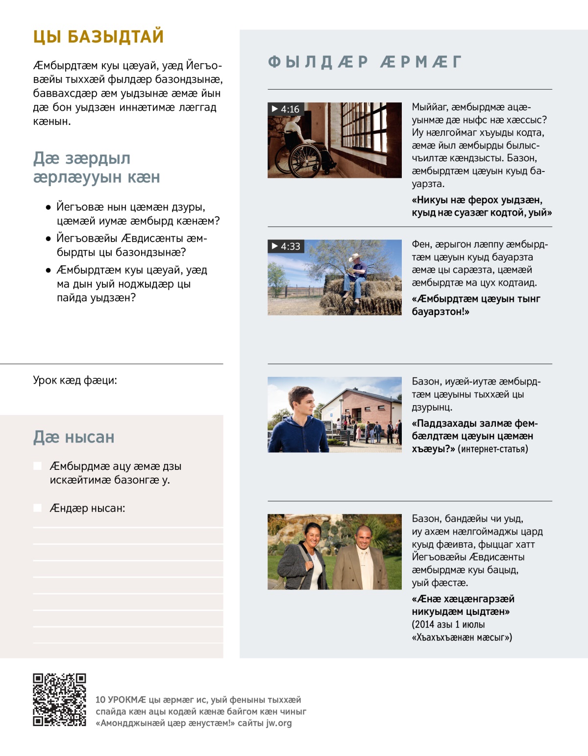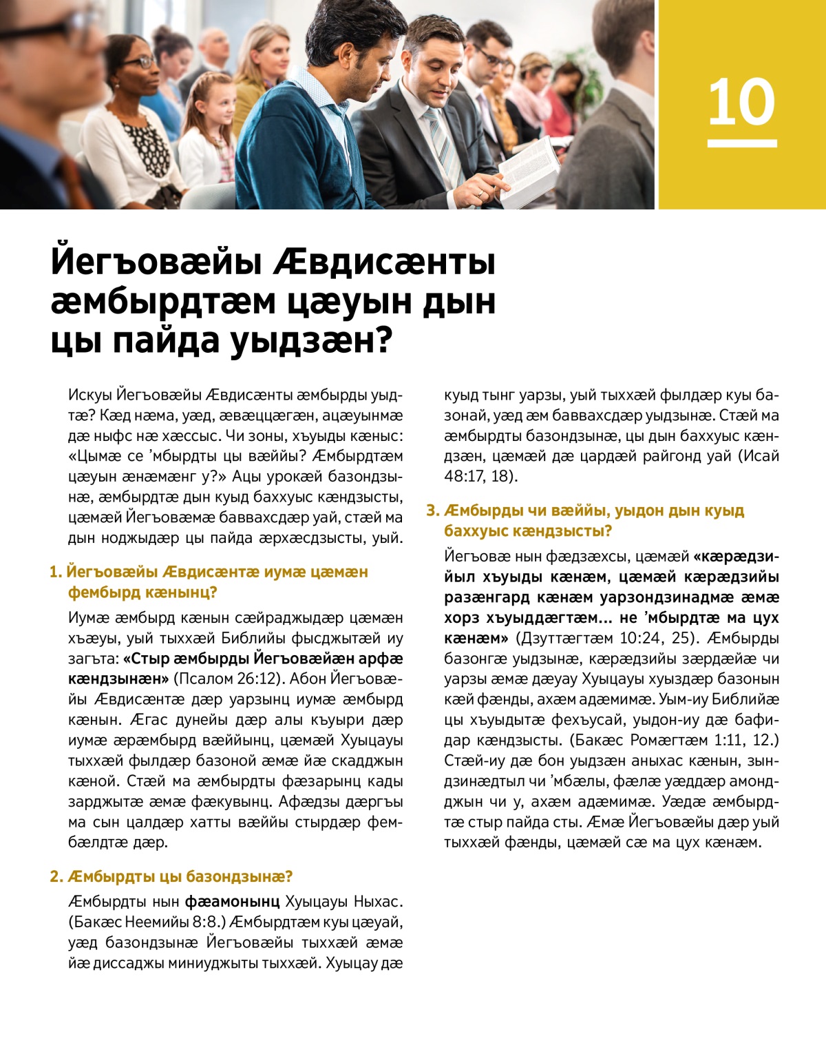 Искуы Йегъовӕйы Ӕвдисӕнты ӕмбырды уыдтӕ? Кӕд нӕма, уӕд, ӕвӕццӕгӕн, ацӕуынмӕ дӕ ныфс нӕ хӕссыс. Чи зоны, хъуыды кӕныс: «Цымӕ се ’мбырдты цы вӕййы? Ӕмбырдтӕм цӕуын ӕнӕмӕнг у?» Ацы урокӕй базондзынӕ, ӕмбырдтӕ дын куыд баххуыс кӕндзысты, цӕмӕй Йегъовӕмӕ баввахсдӕр уай, стӕй ма дын ноджыдӕр цы пайда ӕрхӕсдзысты, уый.