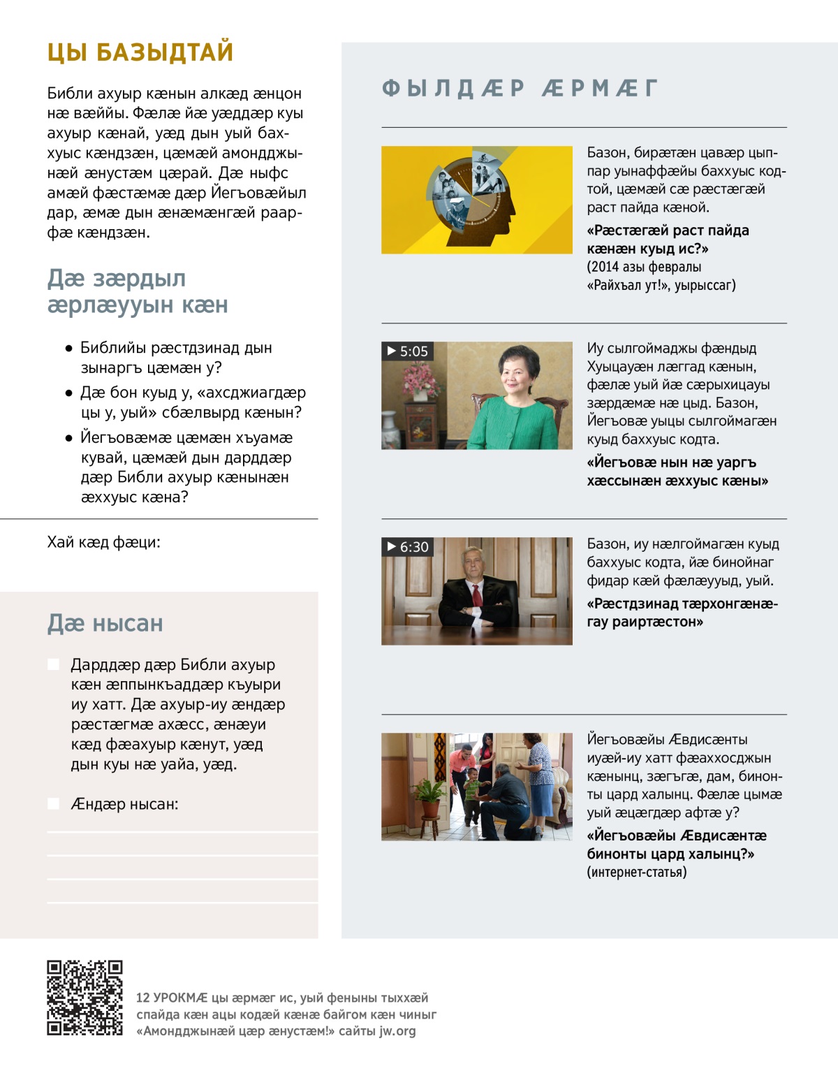 ИСЧИ ДӔ КУЫ БАФӔРСА: «Библи ахуыр кӕнын дын цы пайда у?»