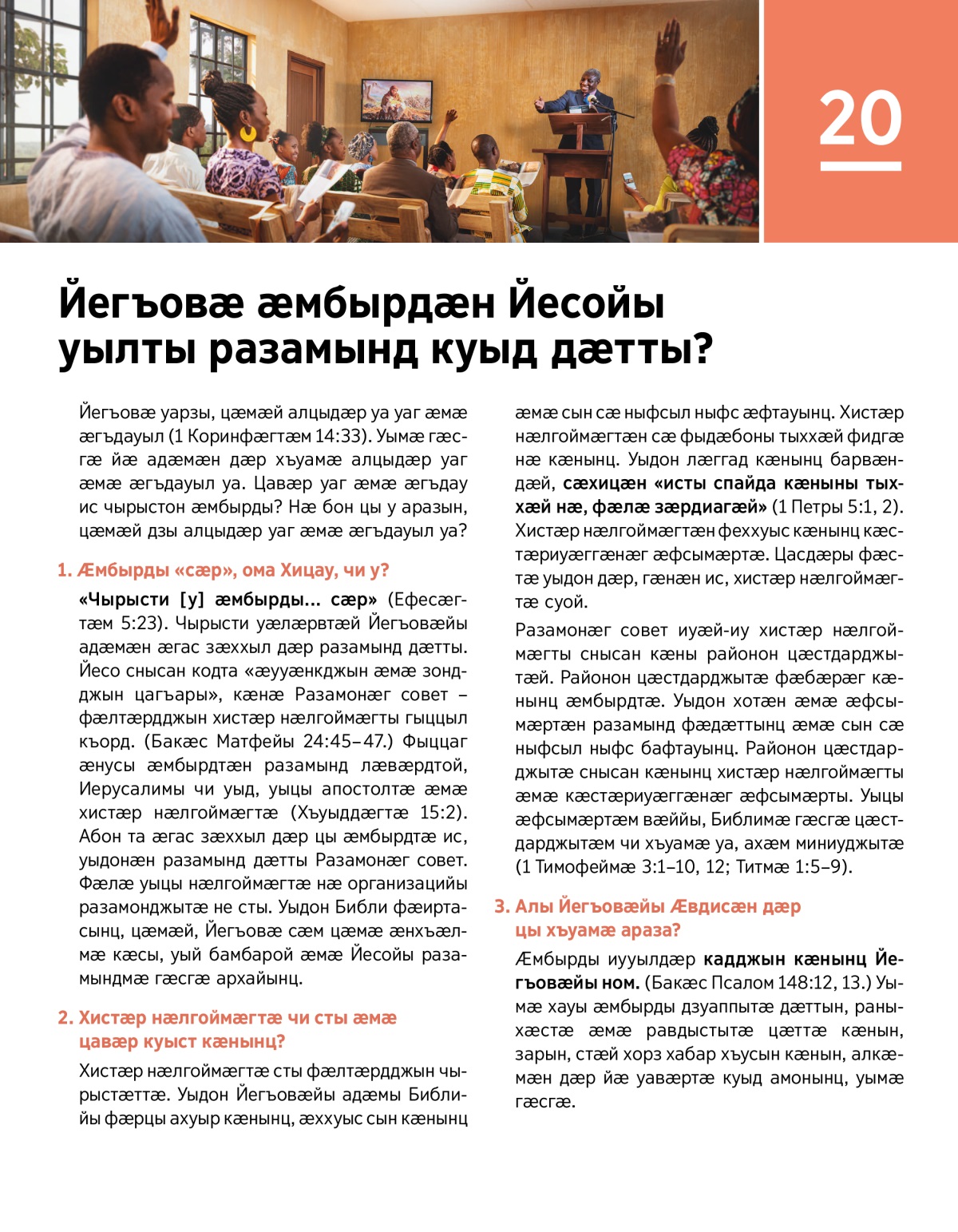 «Чырысти [у] ӕмбырды... сӕр» (Ефесӕгтӕм 5:23). Чырысти уӕлӕрвтӕй Йегъовӕйы адӕмӕн ӕгас зӕххыл дӕр разамынд дӕтты. Йесо снысан кодта «ӕууӕнкджын ӕмӕ зондджын цагъары», кӕнӕ Разамонӕг совет – фӕлтӕрдджын хистӕр нӕлгоймӕгты гыццыл къорд. (Бакӕс Матфейы 24:45–47.) Фыццаг ӕнусы ӕмбырдтӕн разамынд лӕвӕрдтой, Иерусалимы чи уыд, уыцы апостолтӕ ӕмӕ хистӕр нӕлгоймӕгтӕ (Хъуыддӕгтӕ 15:2). Абон та ӕгас зӕххыл дӕр цы ӕмбырдтӕ ис, уыдонӕн разамынд дӕтты Разамонӕг совет. Фӕлӕ уыцы нӕлгоймӕгтӕ нӕ организацийы разамонджытӕ не сты. Уыдон Библи фӕиртасынц, цӕмӕй, Йегъовӕ сӕм цӕмӕ ӕнхъӕлмӕ кӕсы, уый бамбарой ӕмӕ Йесойы разамындмӕ гӕсгӕ архайынц.