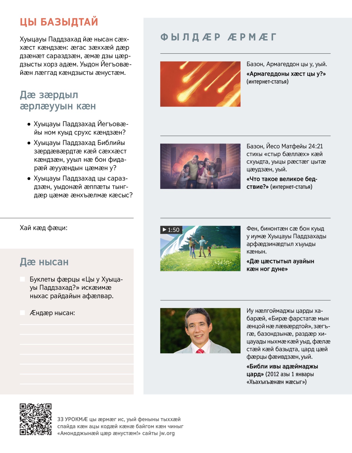 1. Хуыцауы Паддзахад зӕхмӕ рӕстдзинад ӕмӕ фарн куыд ӕрхӕсдзӕн?