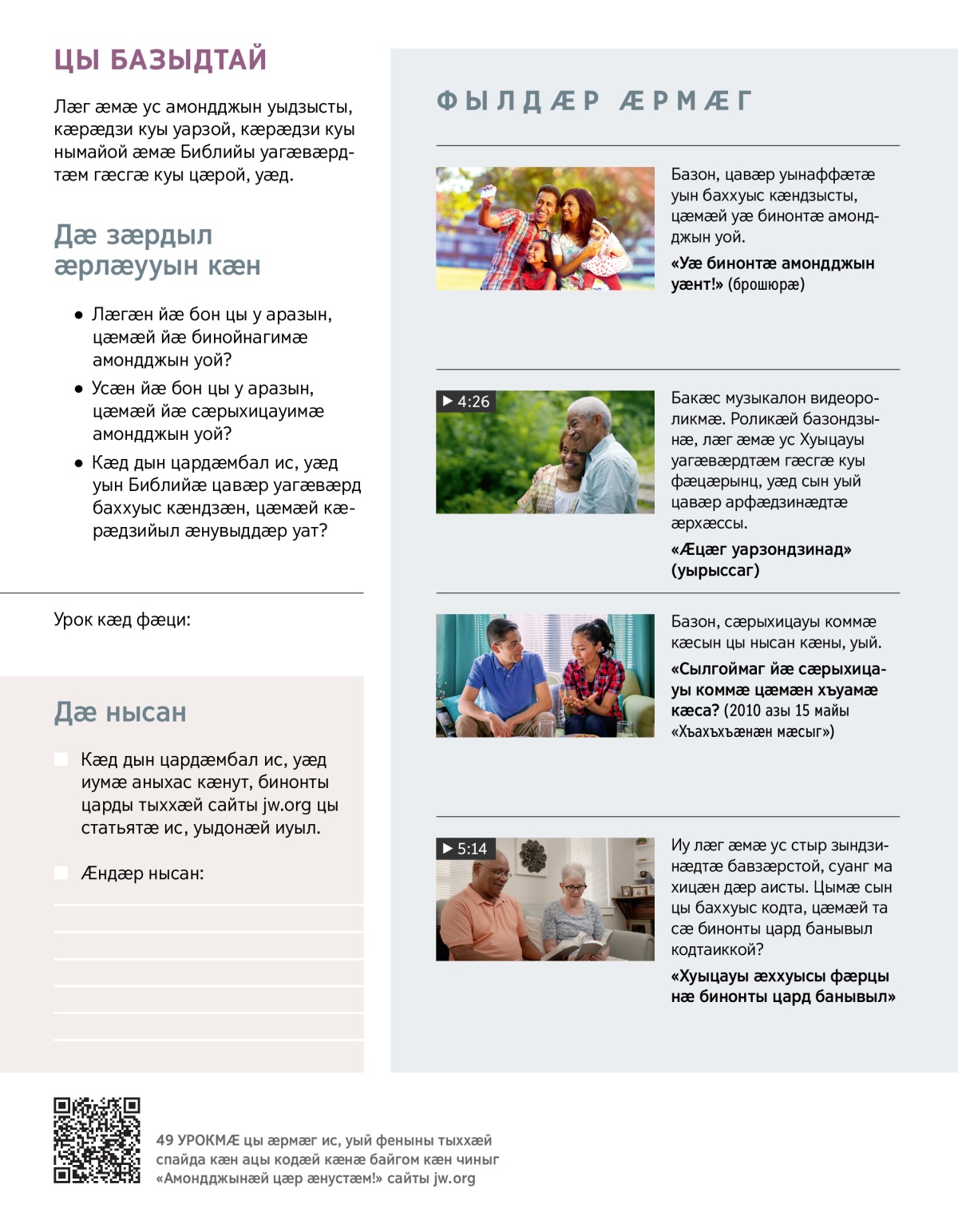Лӕг ӕмӕ ус амондджын уыдзысты, кӕрӕдзи куы уарзой, кӕрӕдзи куы нымайой ӕмӕ Библийы уагӕвӕрдтӕм гӕсгӕ куы цӕрой, уӕд.