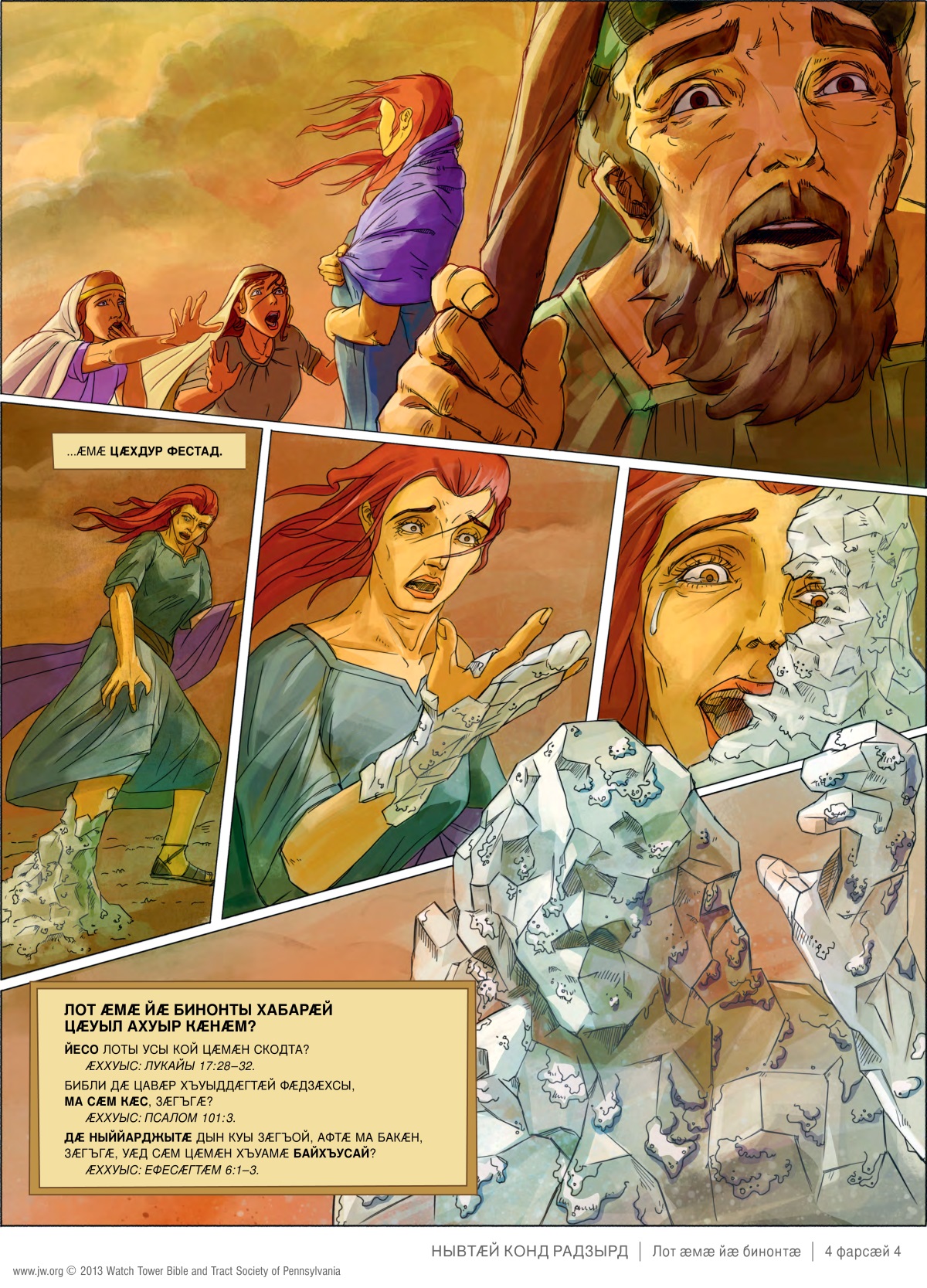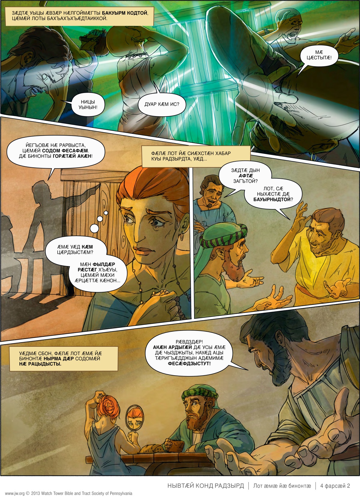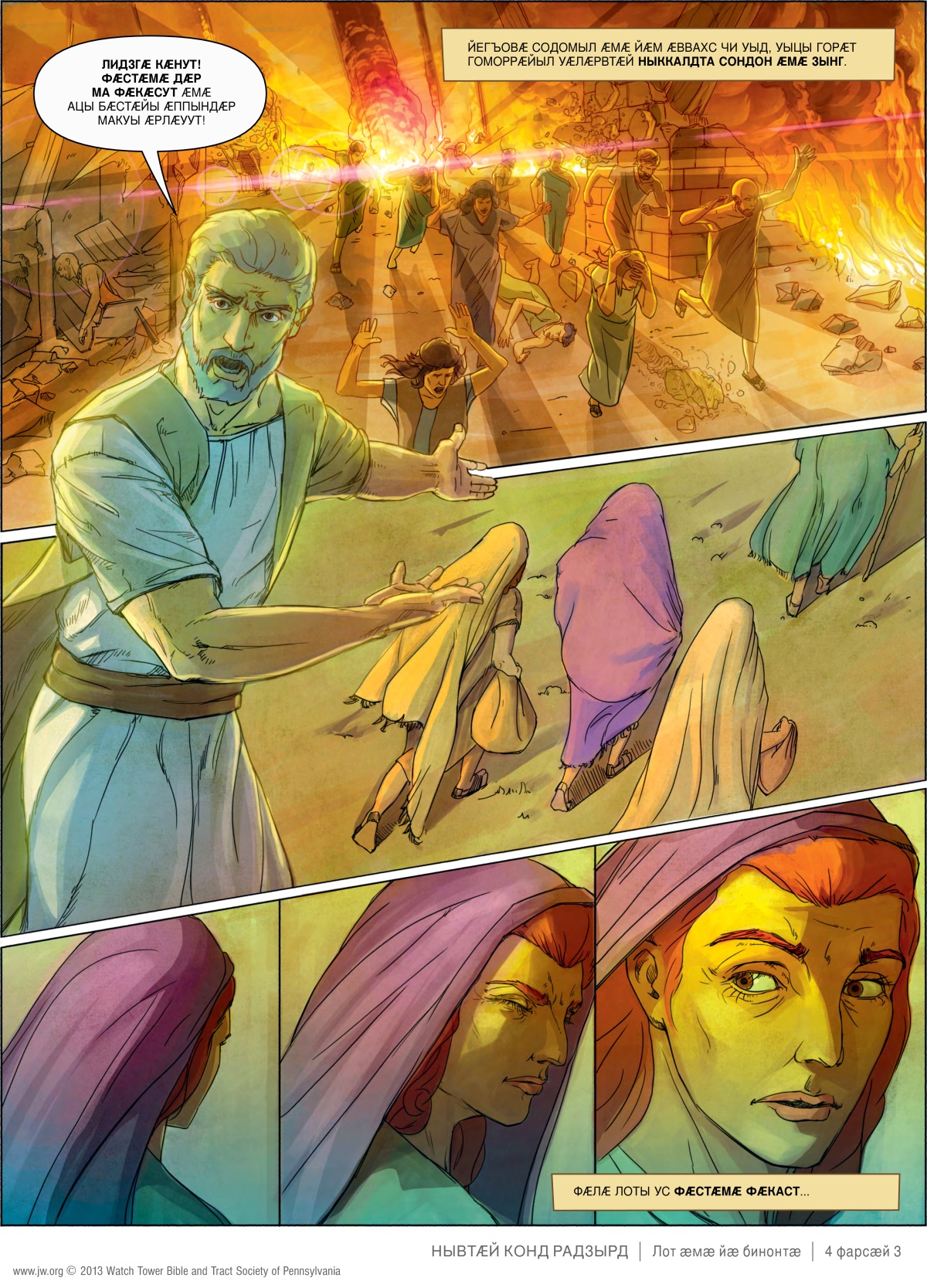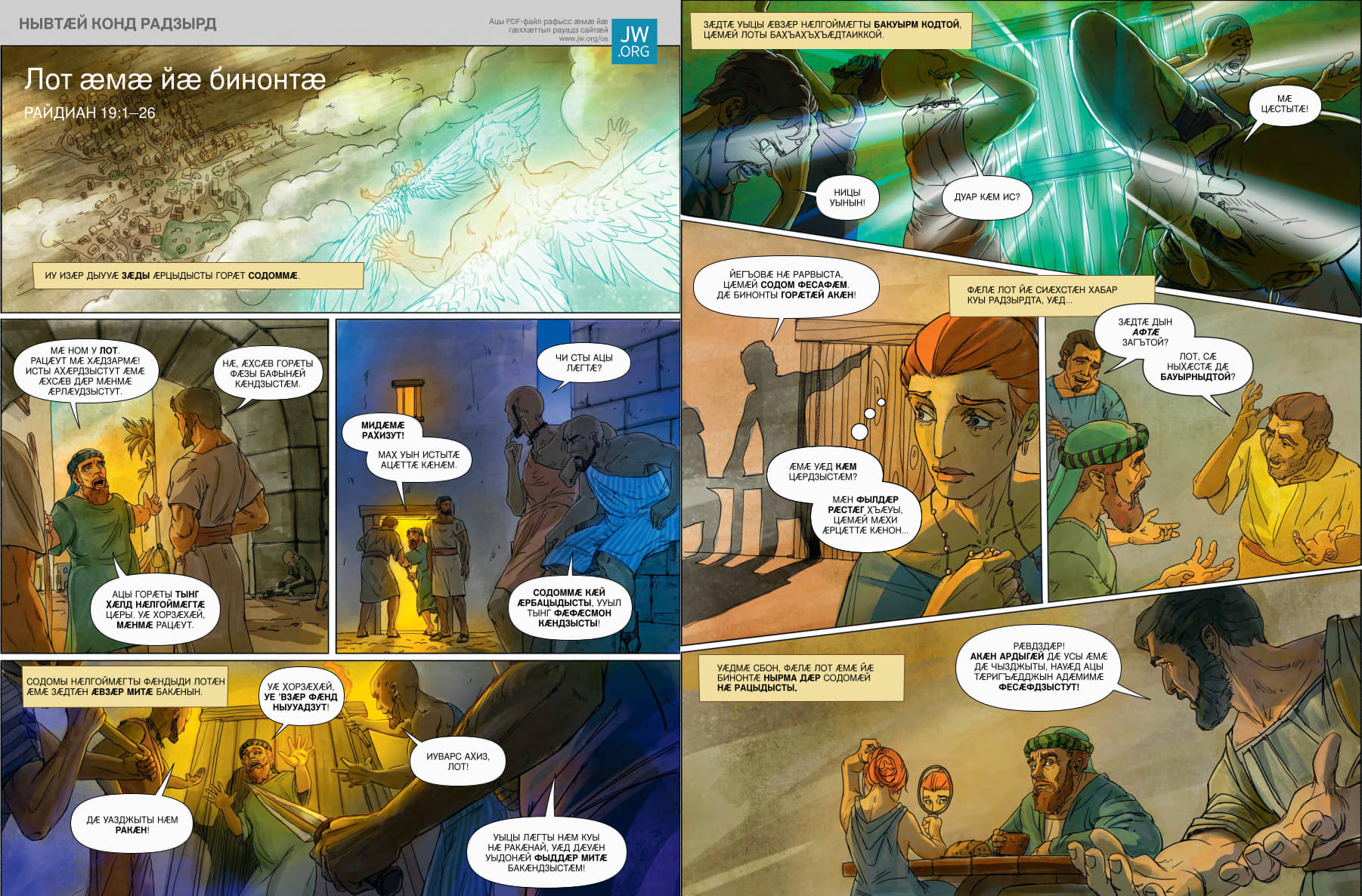 Бакӕс Лот, йӕ ус ӕмӕ йӕ чызджыты тыххӕй, стӕй, Содом ӕмӕ Гоморрӕйӕн се сӕфт куыд ӕрцыд, уый тыххӕй.