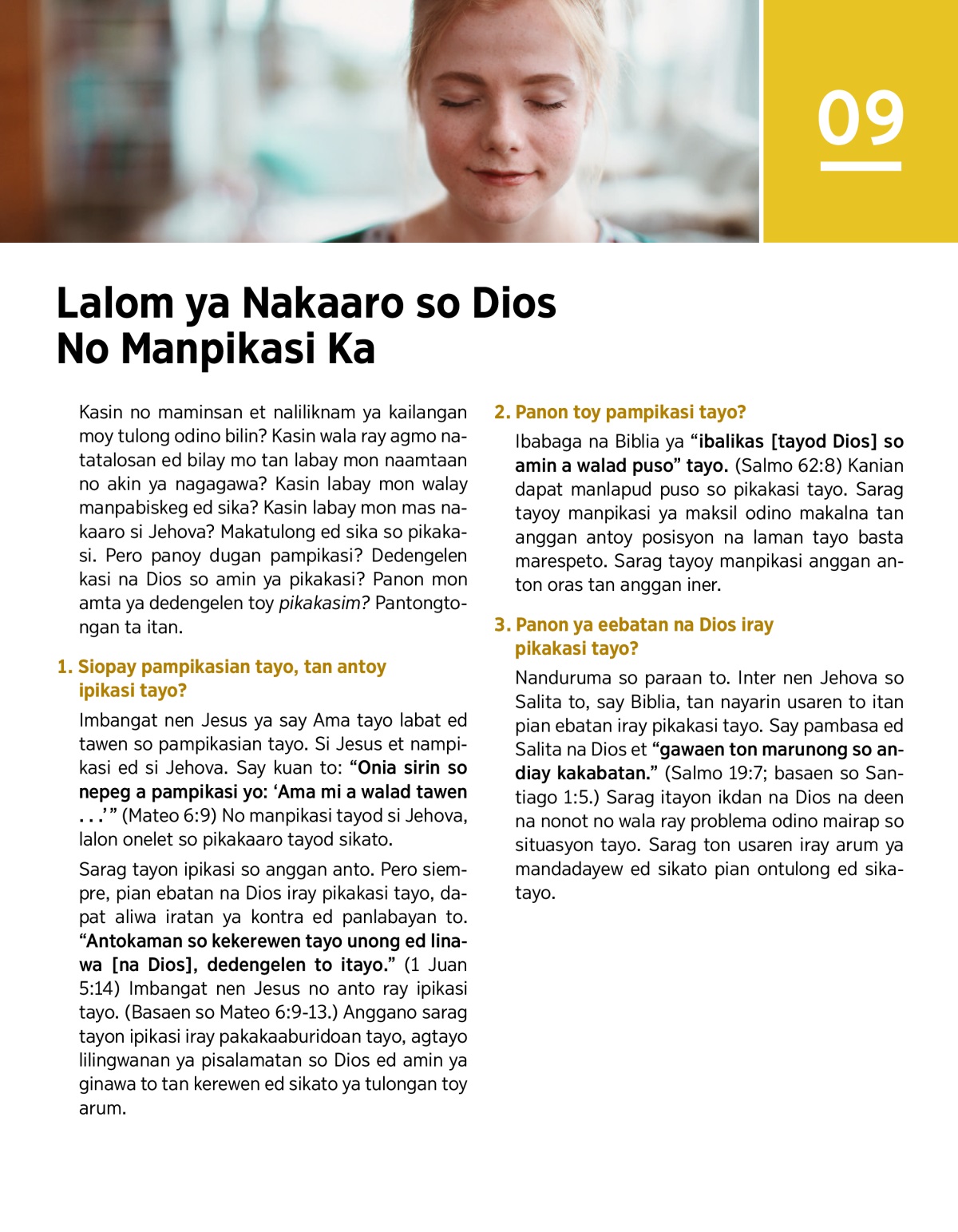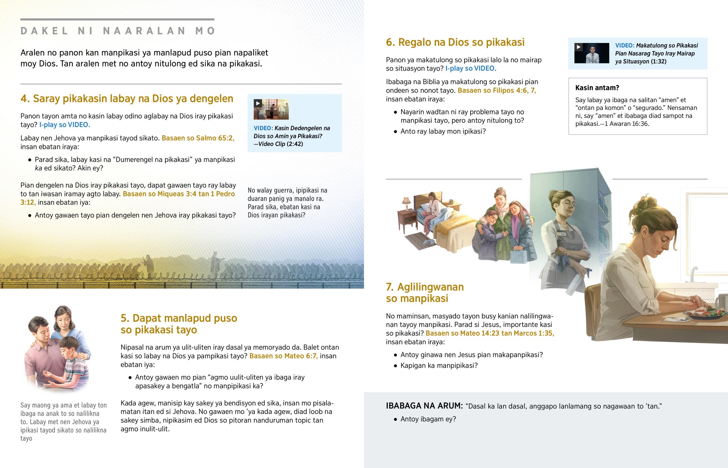 Kasin no maminsan et naliliknam ya kailangan moy tulong odino bilin? Kasin wala ray agmo natatalosan ed bilay mo tan labay mon naamtaan no akin ya nagagawa? Kasin labay mon walay manpabiskeg ed sika? Kasin labay mon mas nakaaro si Jehova? Makatulong ed sika so pikakasi. Pero panoy dugan pampikasi? Dedengelen kasi na Dios so amin ya pikakasi? Panon mon amta ya dedengelen toy pikakasim? Pantongtongan ta itan.