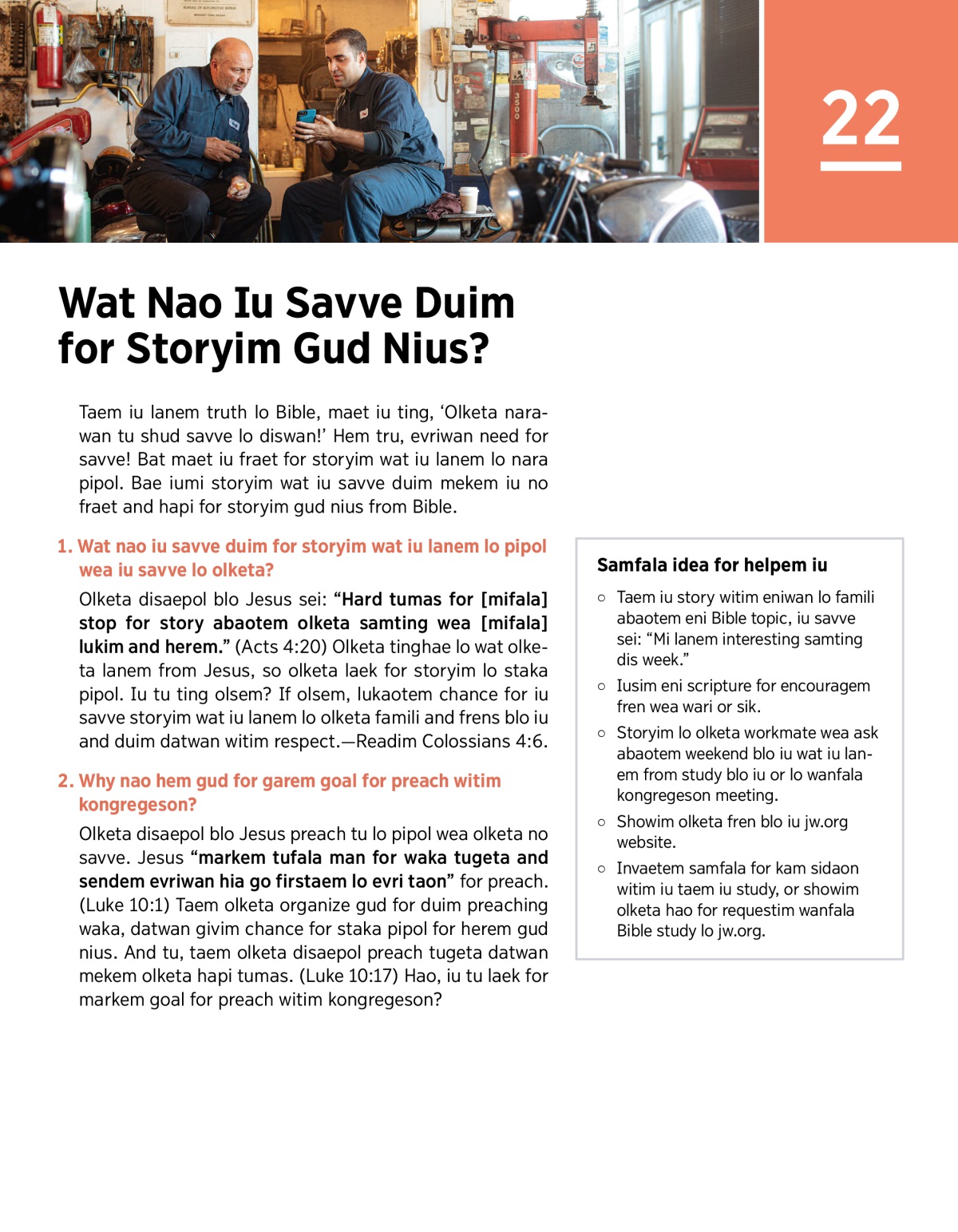 • Wat Nao Iu Savve Duim for Preach lo Olketa Narawan?