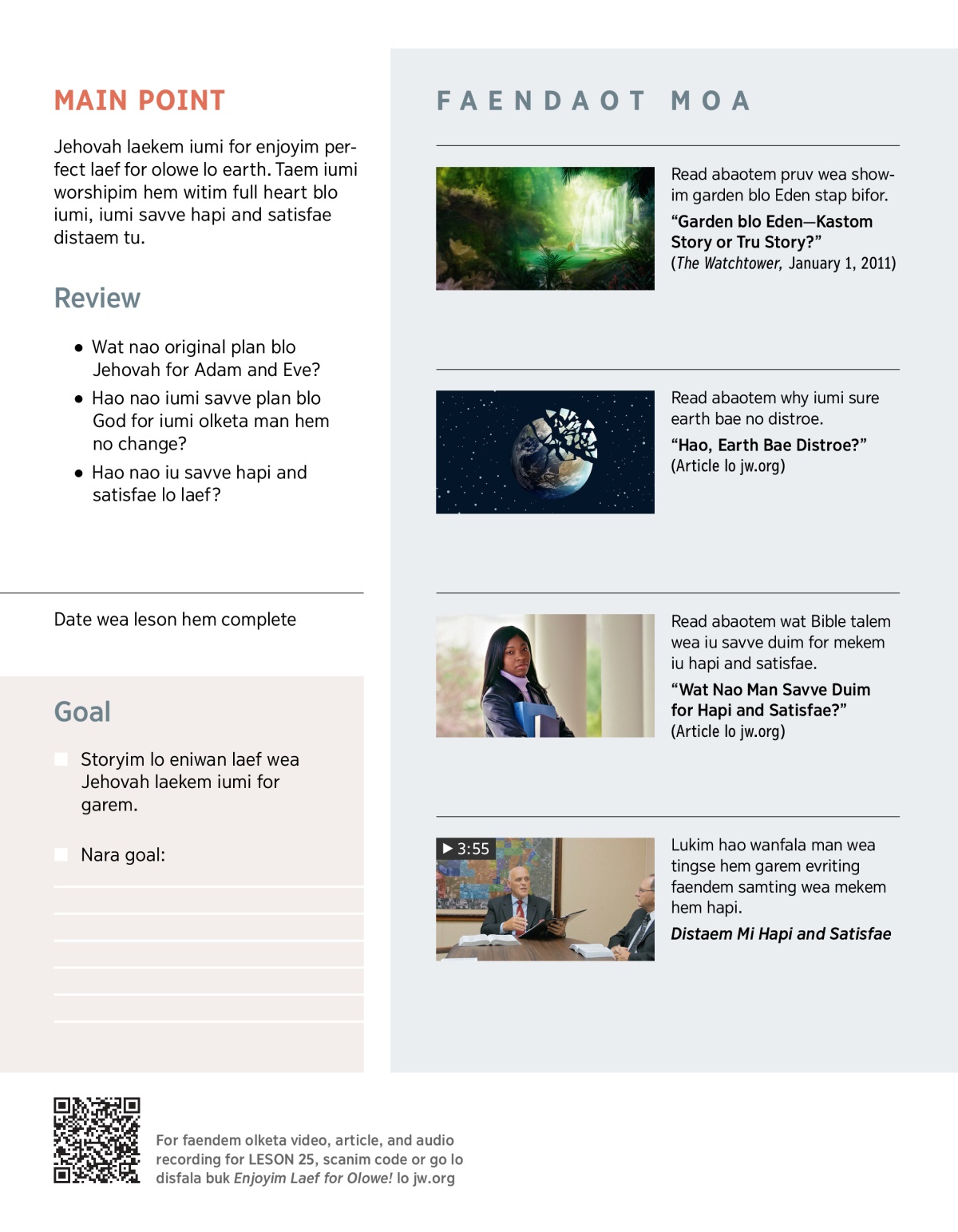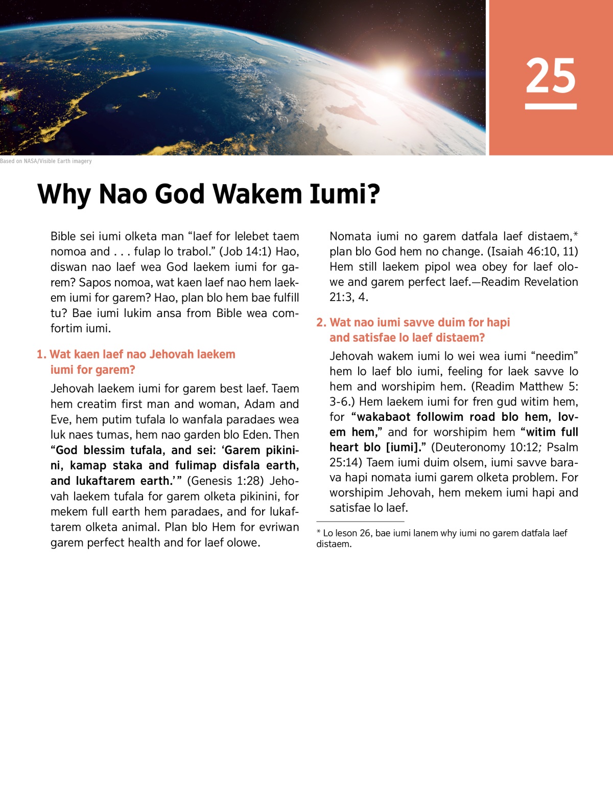 1. Jehovah laekem iumi for garem wat kaen laef?